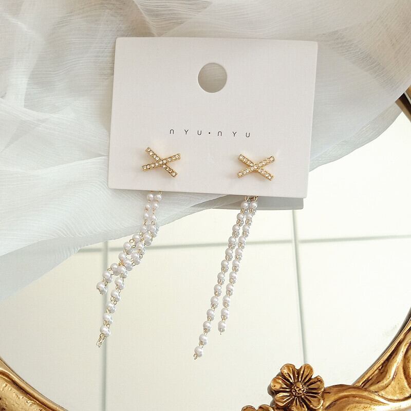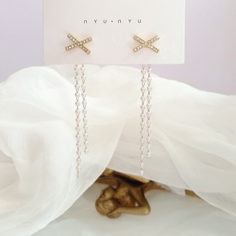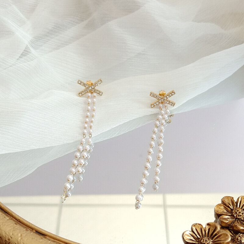 【小物】ファッションシンプルラインストーンフリンジピアスアクセサリー