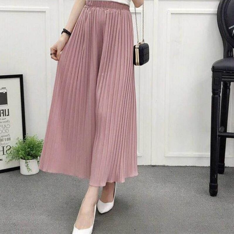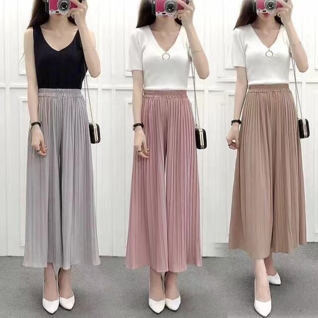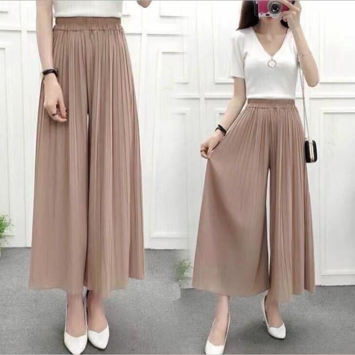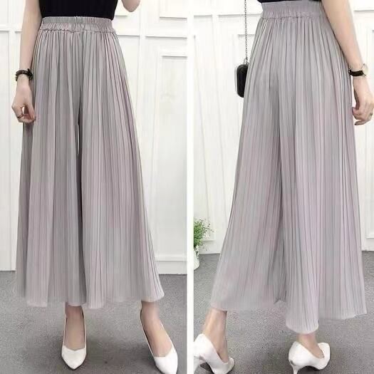 【bottoms】人気item!無地シフォン合わせやすいハイウエストプリーツガウチョパンツ