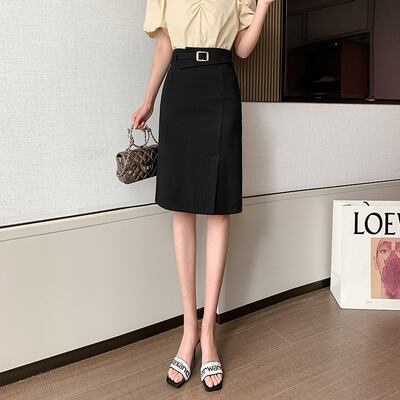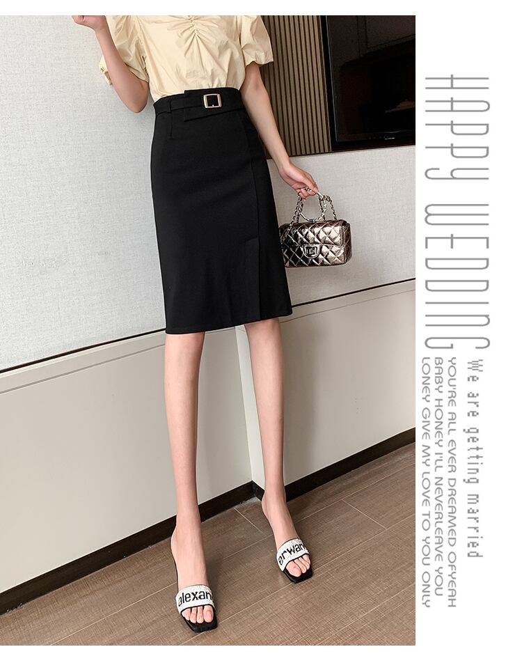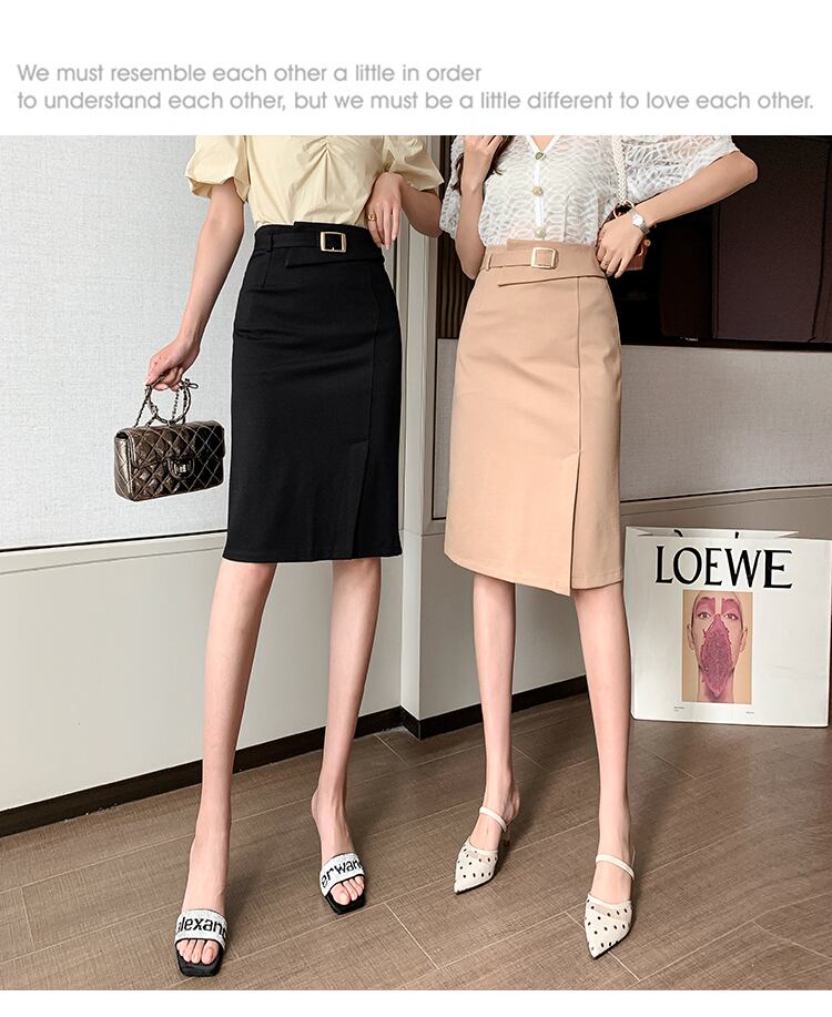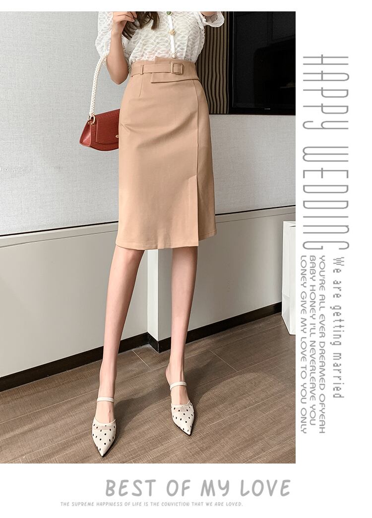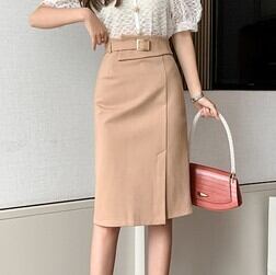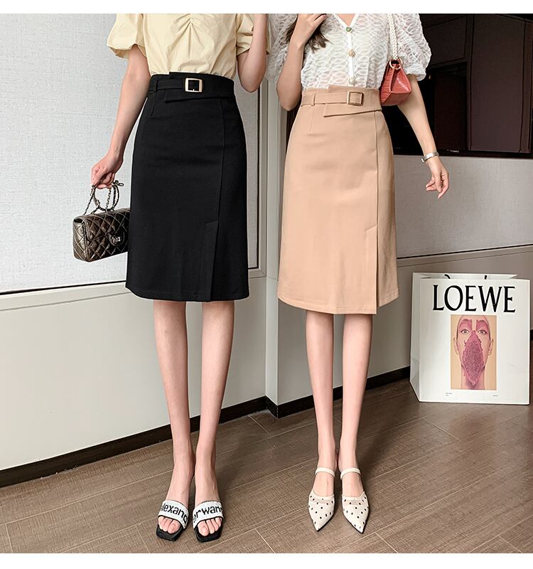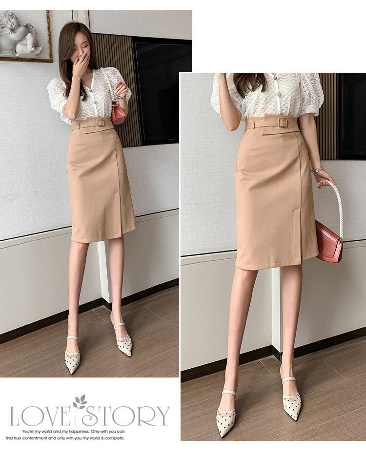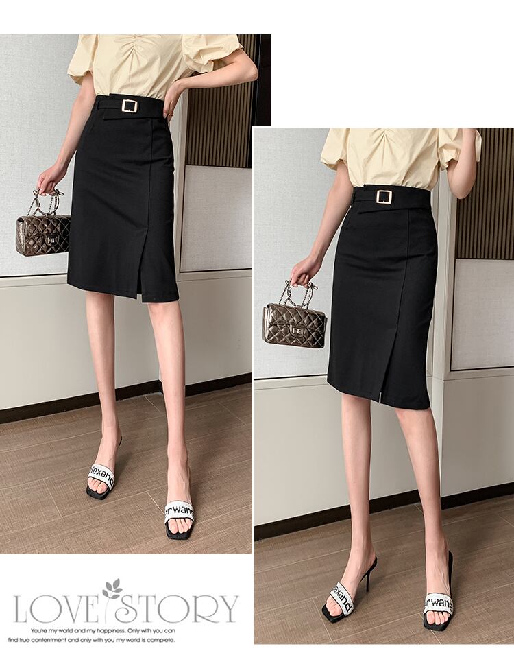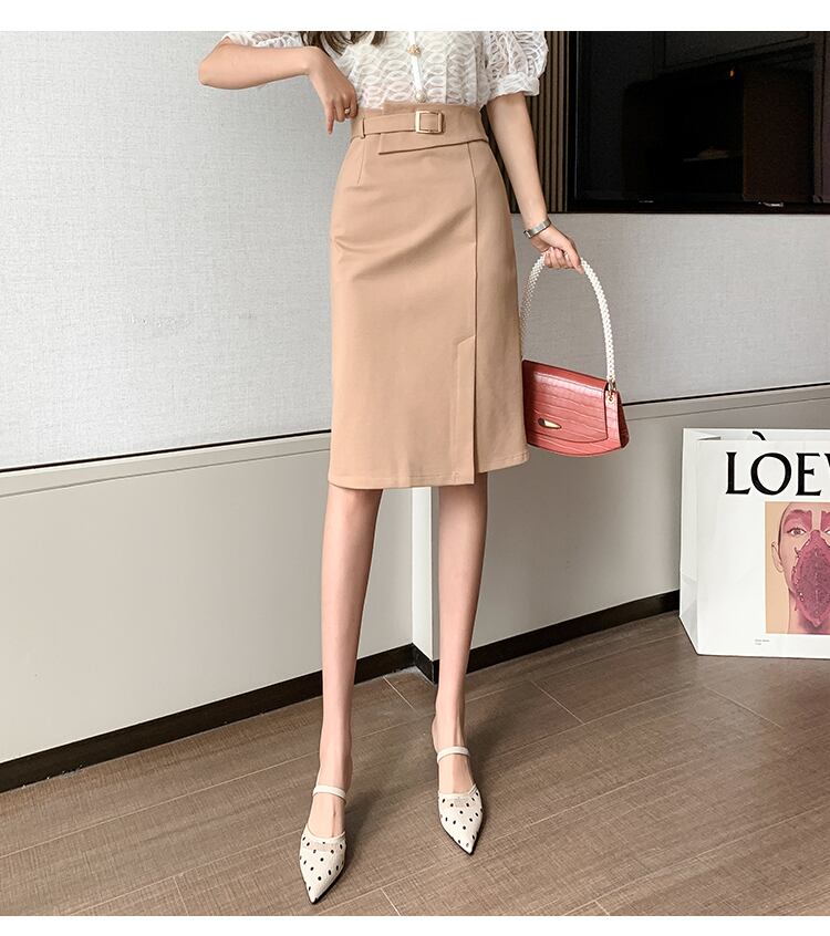 【bottoms】春夏OL通勤無地レディースファッションスリットハイウエストスカート