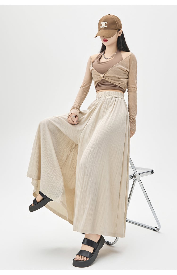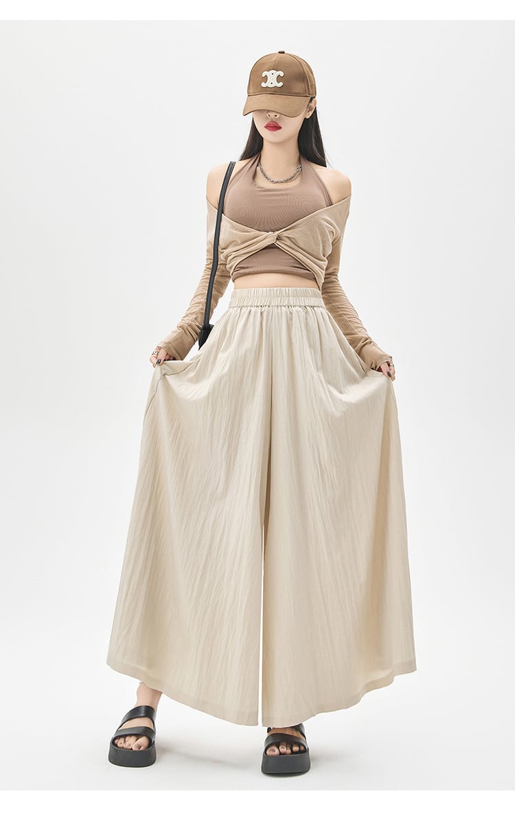【bottoms】3色ウエストゴムガウチョパンツF7490