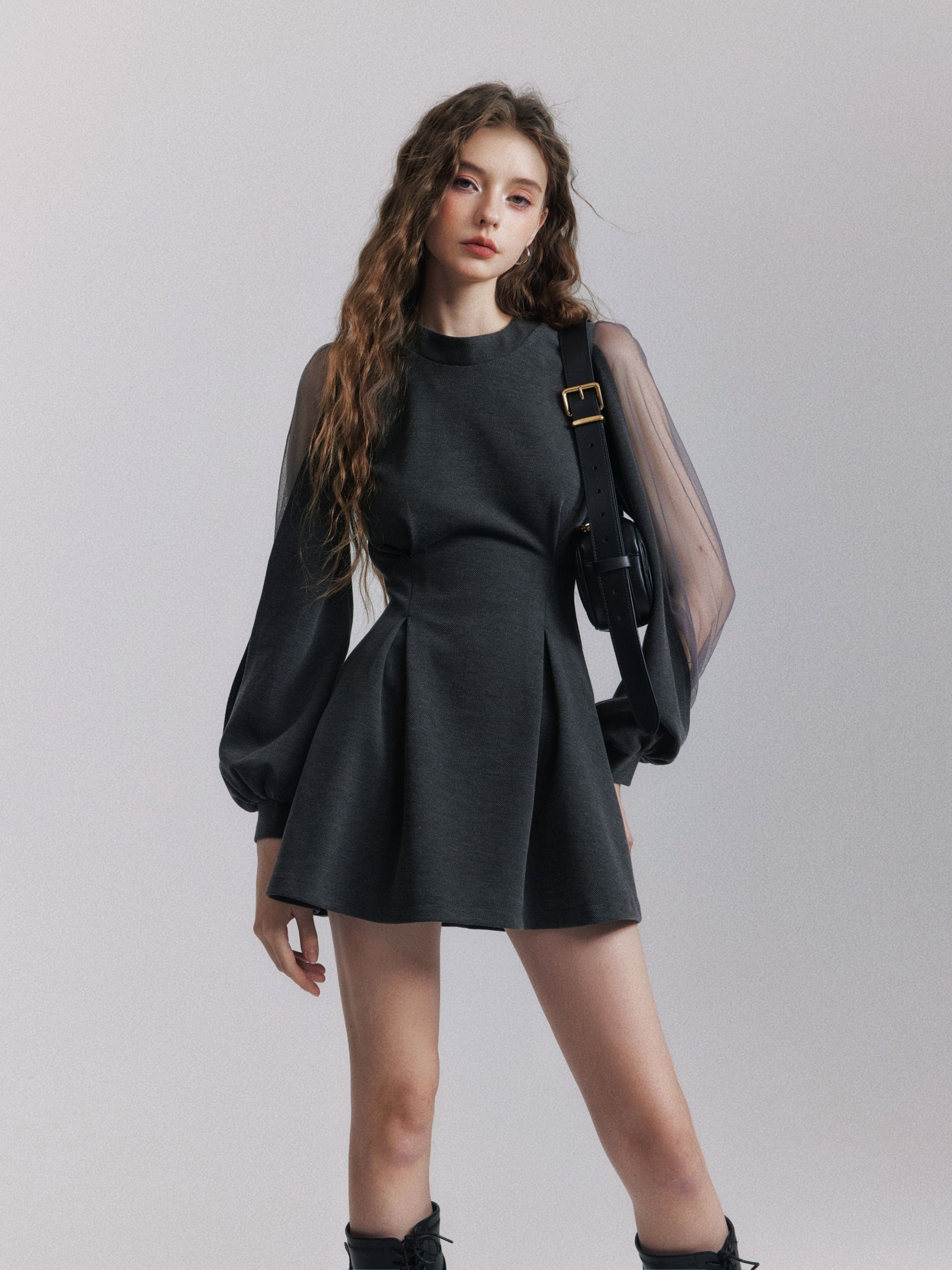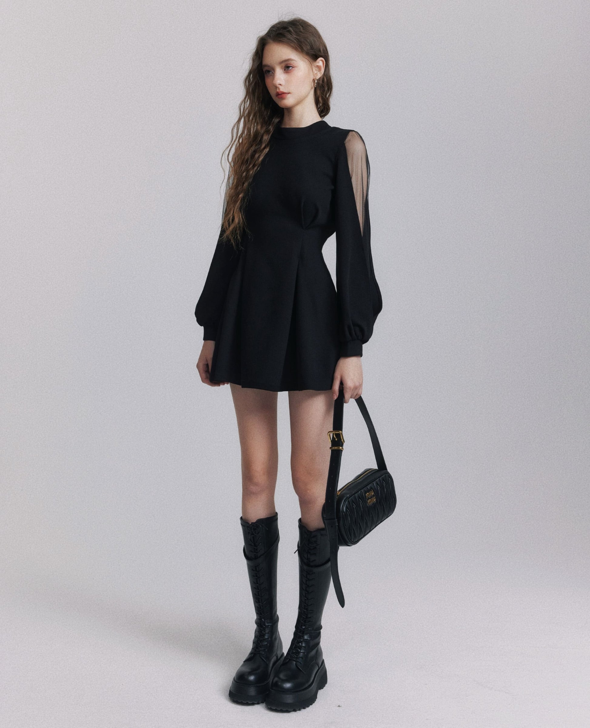 【dress】バックリボンチュールスリーブミニワンピース N3484