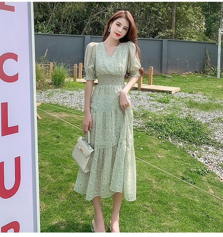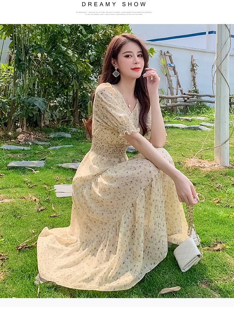 【dress】ファッションend清新!ウィートシフォン森ガール着痩せ花柄ワンピース