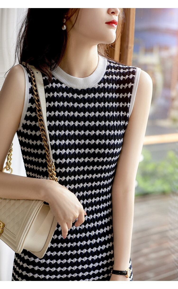 【dress】好感度UP!カジュアル気質満点夏ラウンドネックスウィートニットワンピース