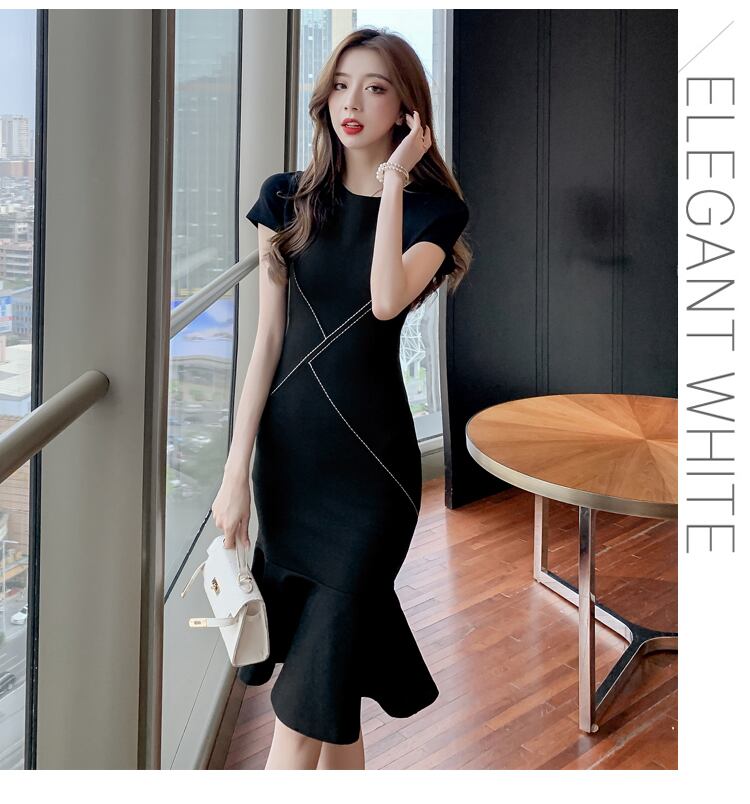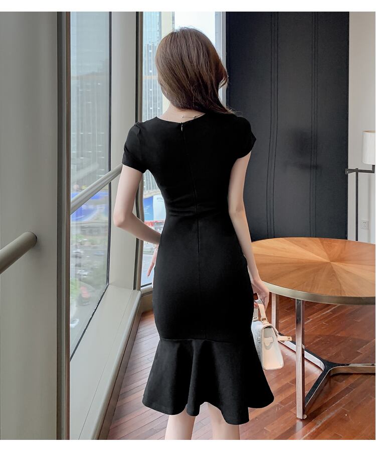 【dress】細身効果抜群好感度UP!韓国風OL通勤気質満点フリルマーメイドワンピース