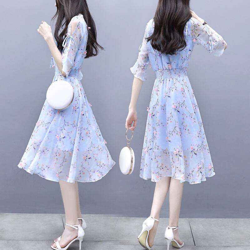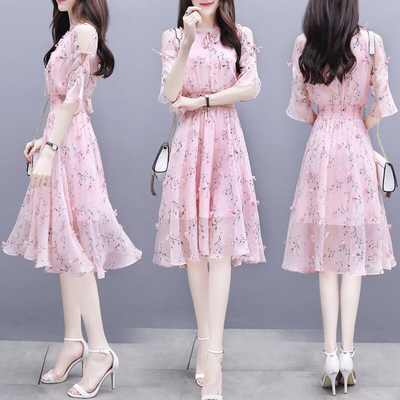 【dress】韓国風好感度100%気質満点シフォンスウィート花柄ワンピース