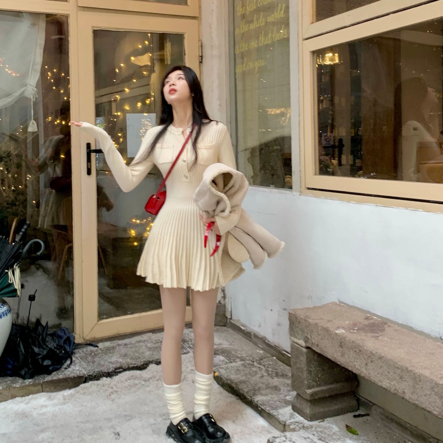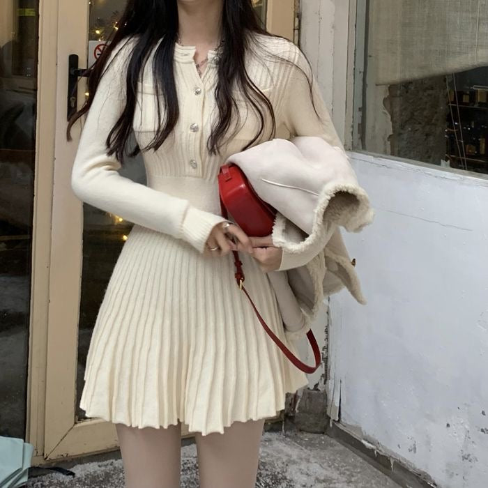 【dress】長袖AラインニットワンピースF8057