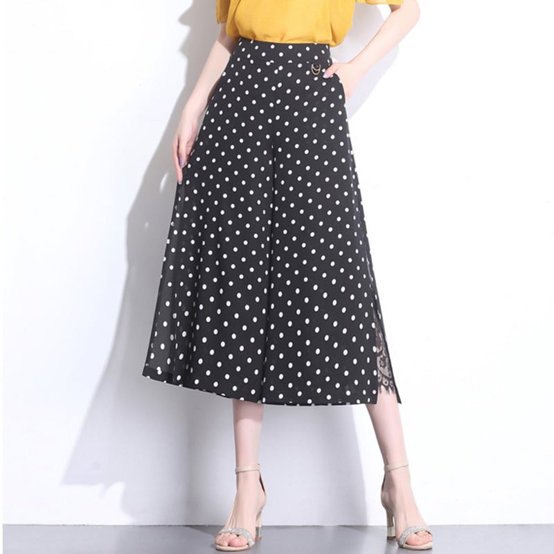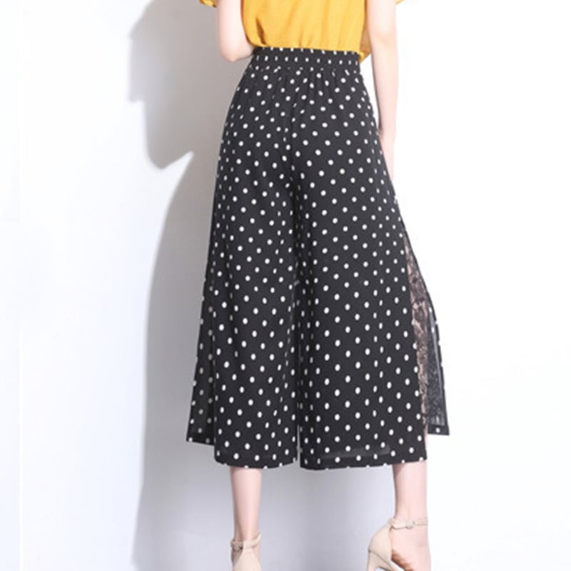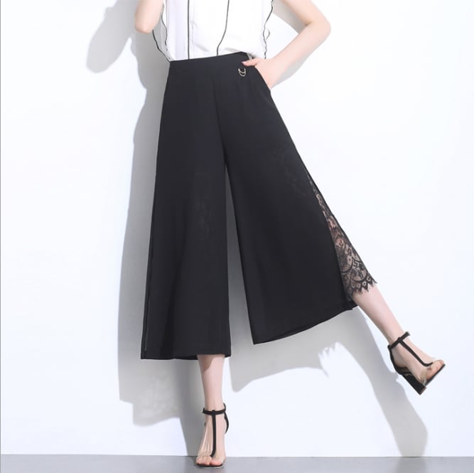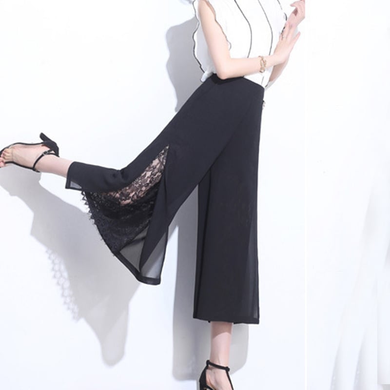 【bottoms】流行アイテム!レース切り替えシフォン合わせやすいガウチョパンツF0018