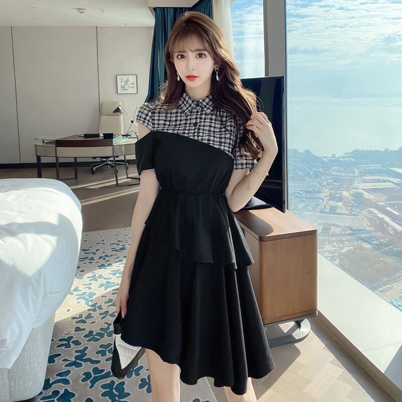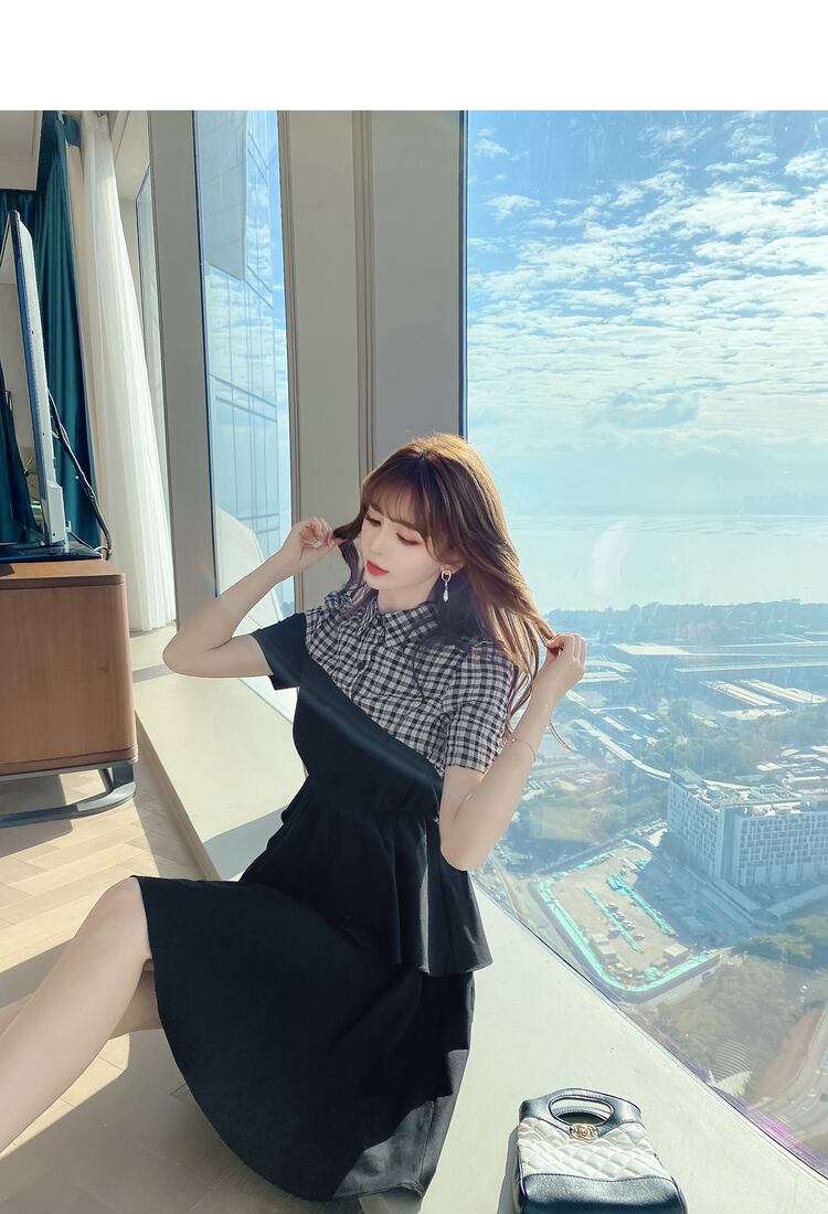 【dress】高級感!気質満点OL通勤POLOネック切り替えチェック柄ワンピースF0033