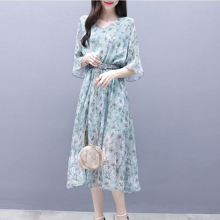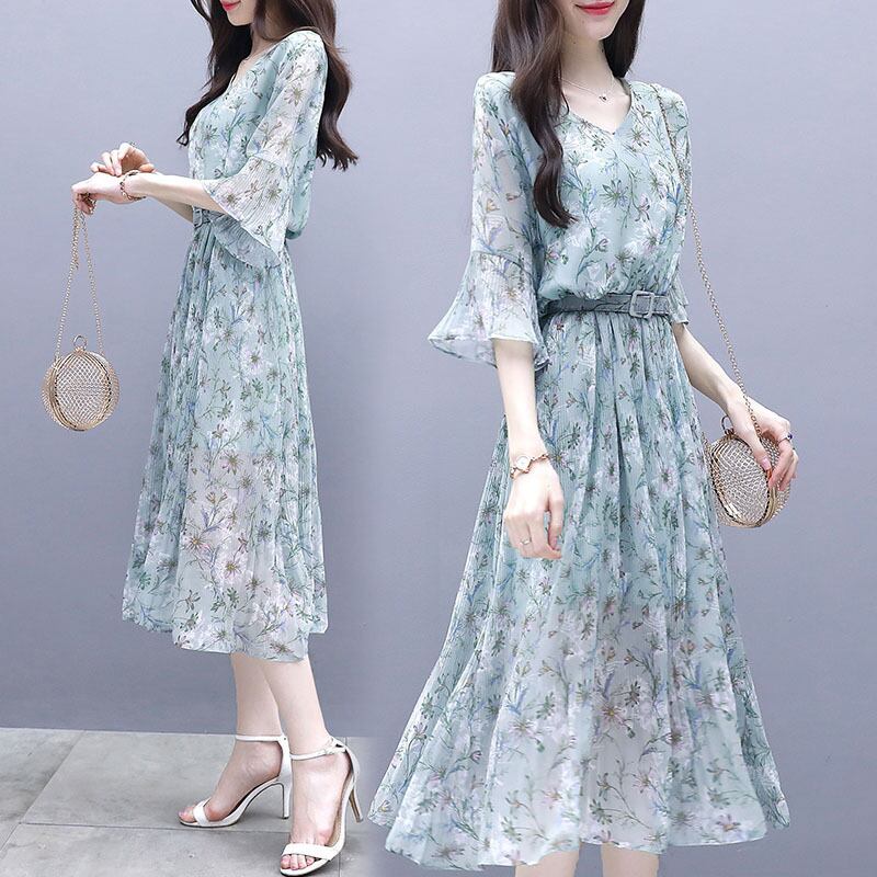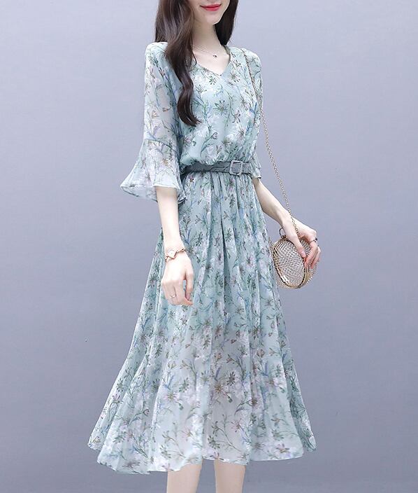 【dress】女性力を高める〜Vネックフレアスリーブ韓国ファッション花柄ワンピースF0295