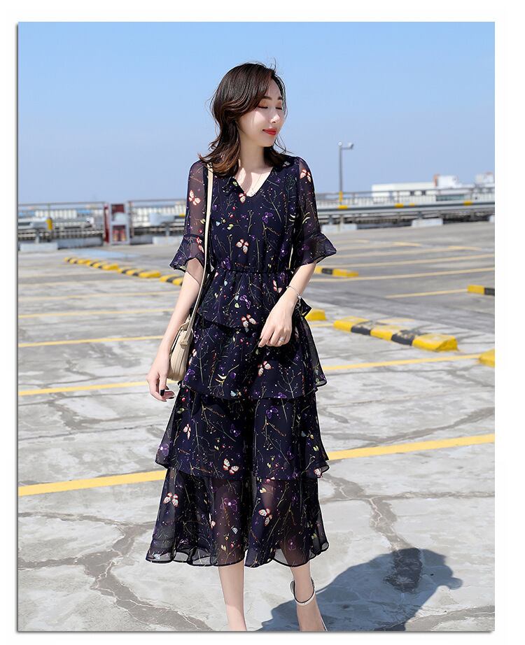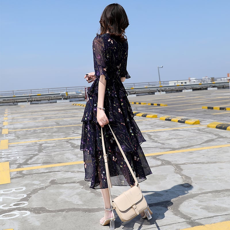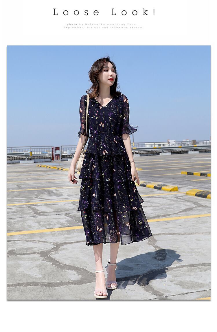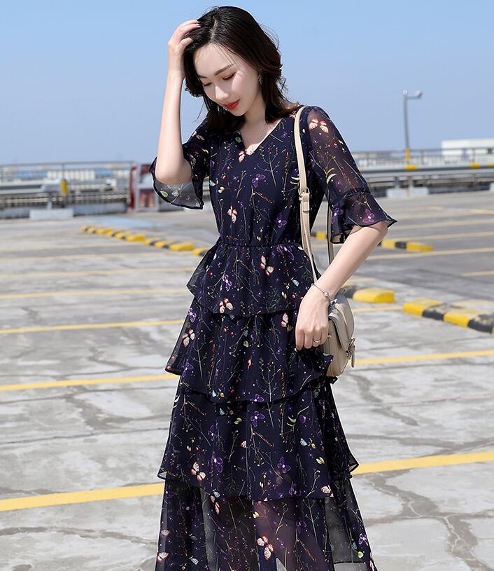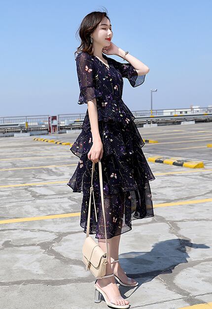 【dress】一目惚れ!Vネックフレアスリーブギャザー花柄ワンピースF0297