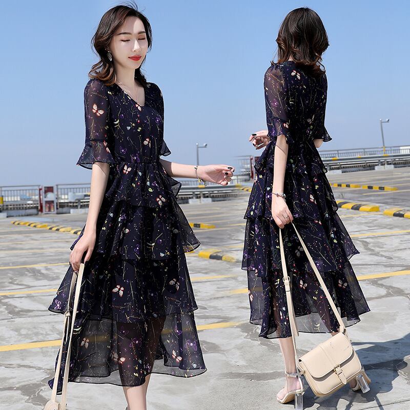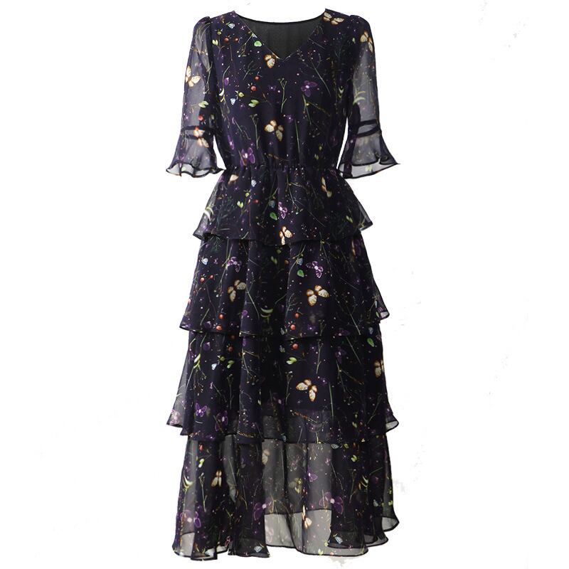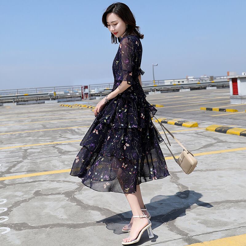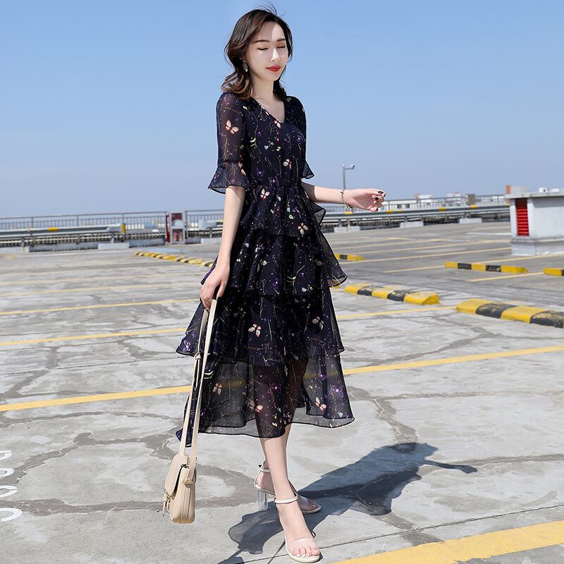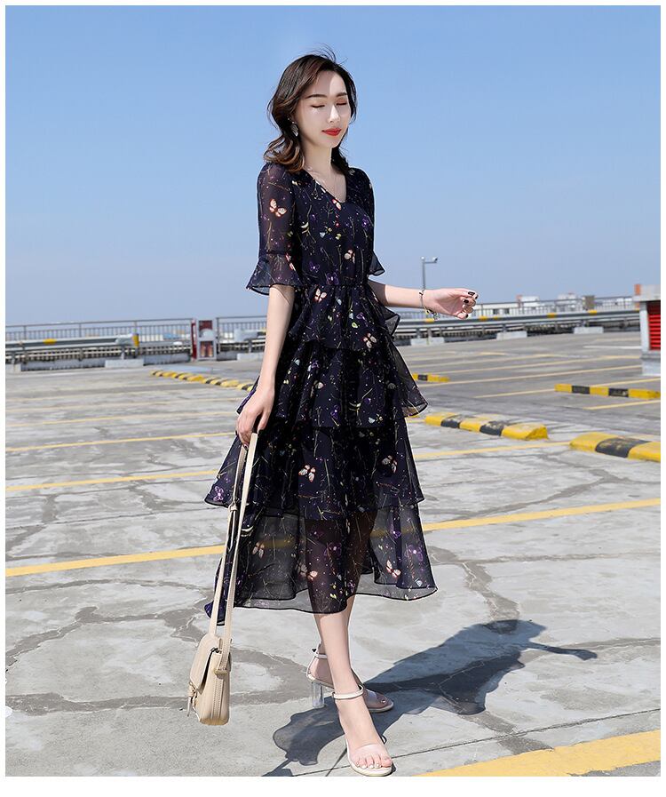 【dress】一目惚れ!Vネックフレアスリーブギャザー花柄ワンピースF0297