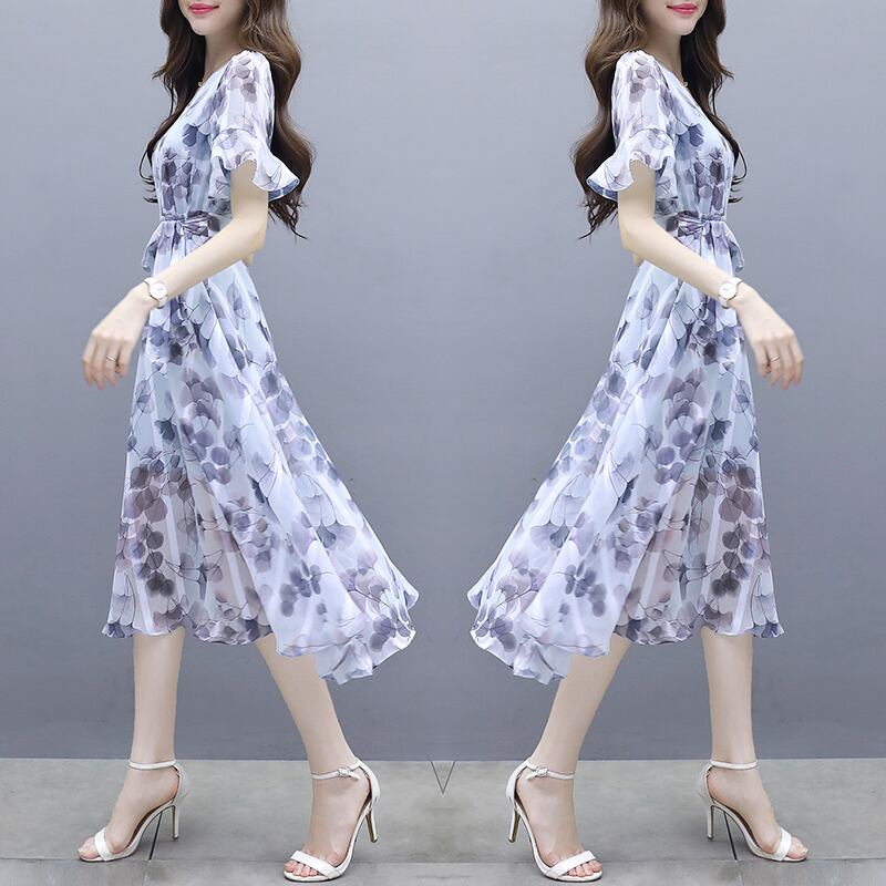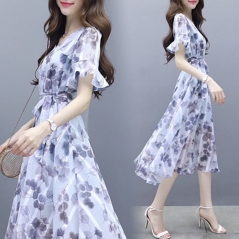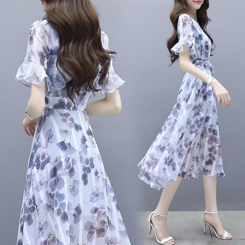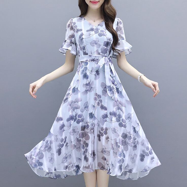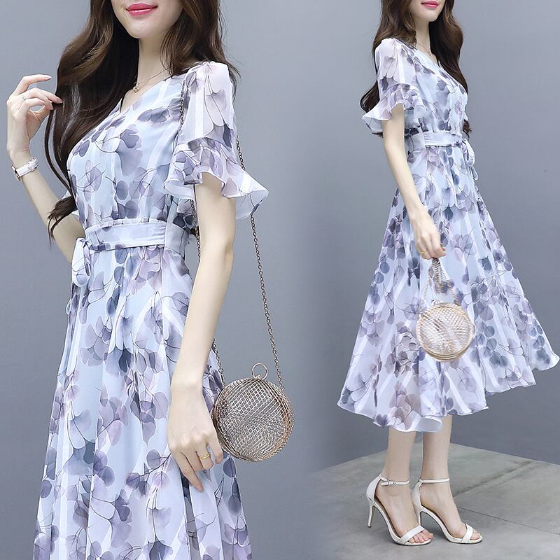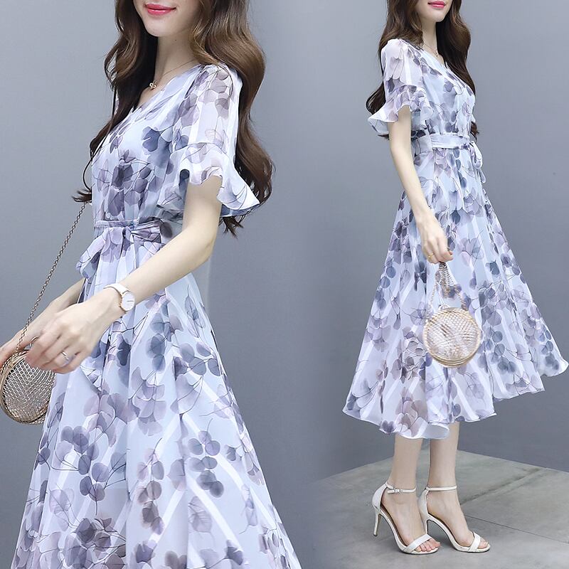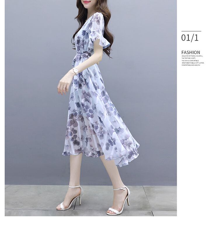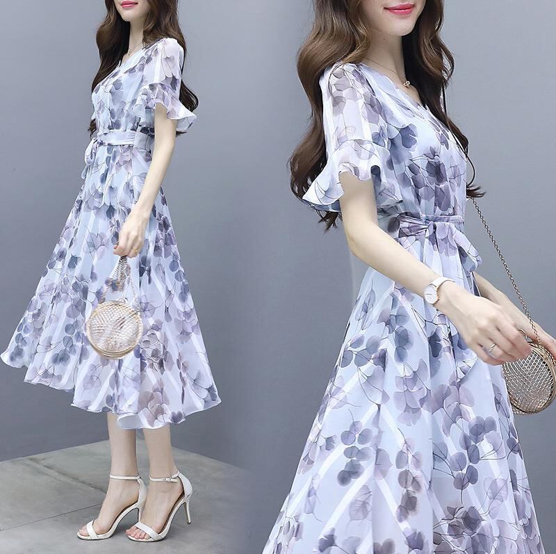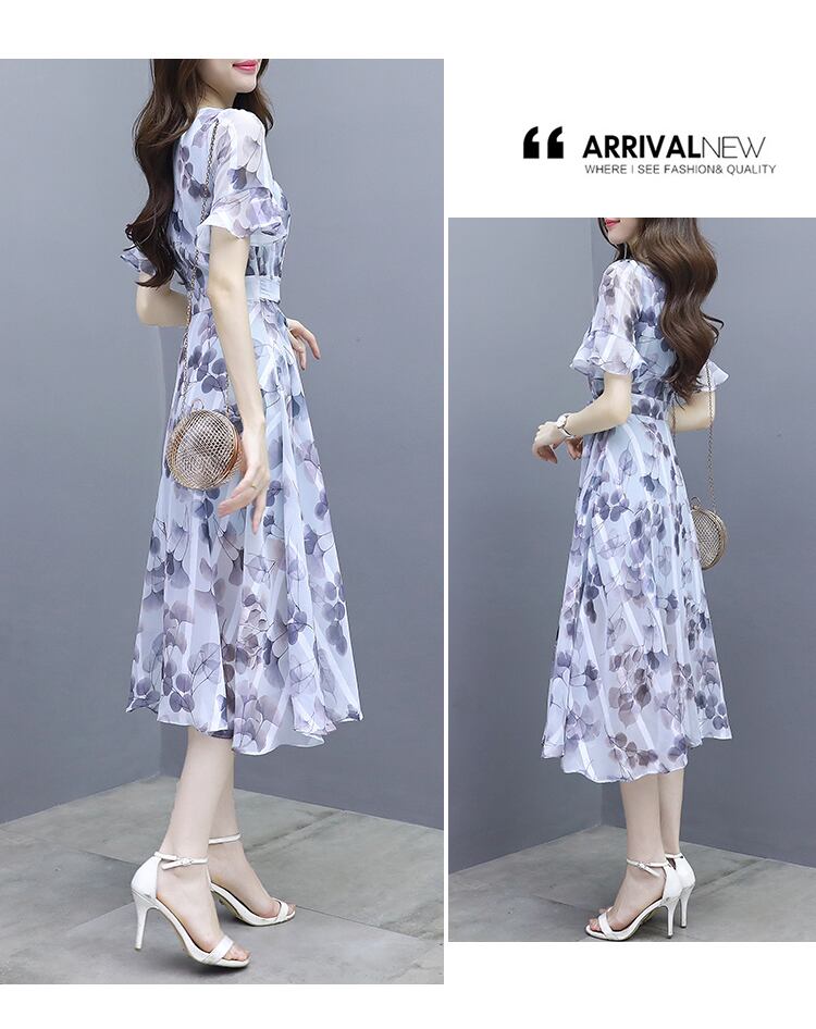 【dress】一目惚れ!Vネックフレアスリーブギャザー花柄ワンピースF0298