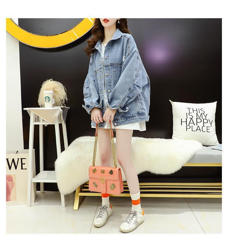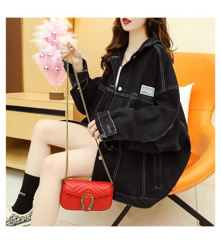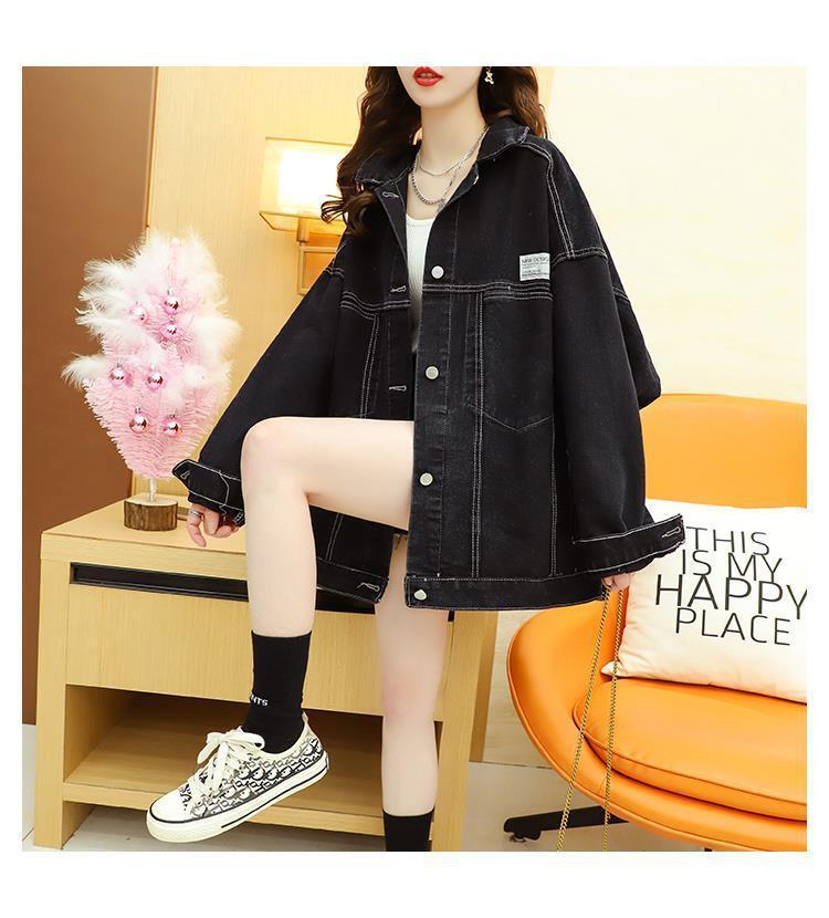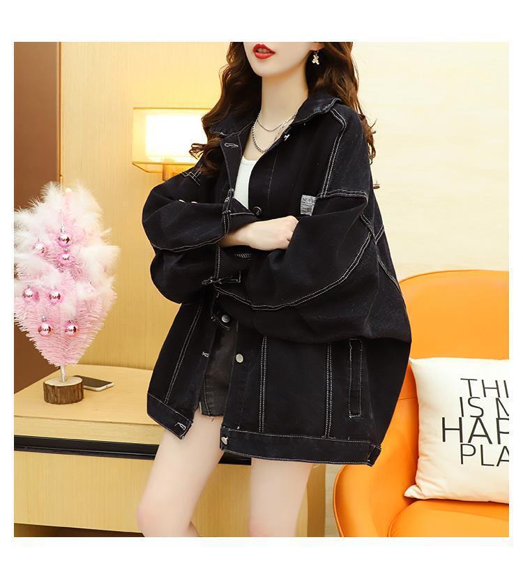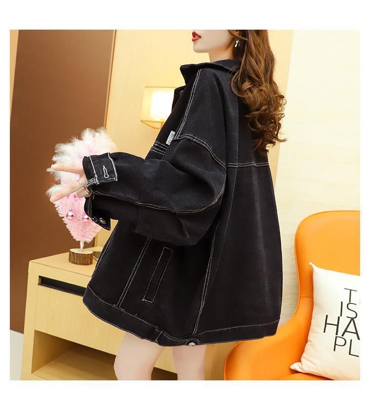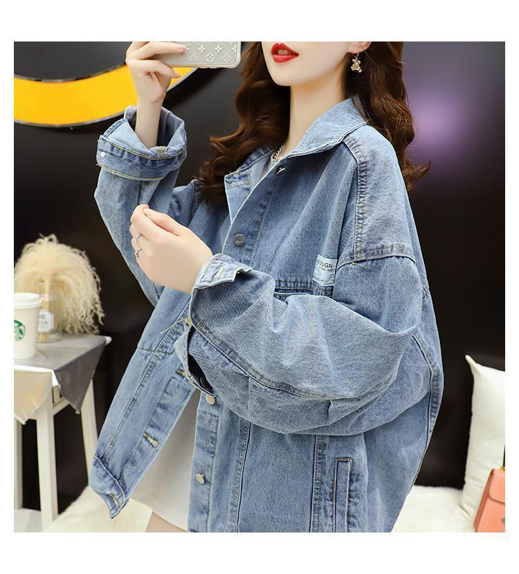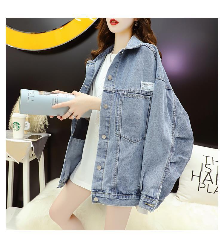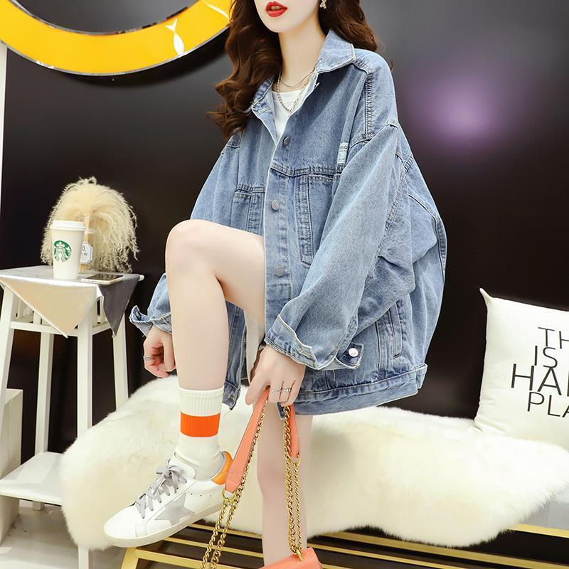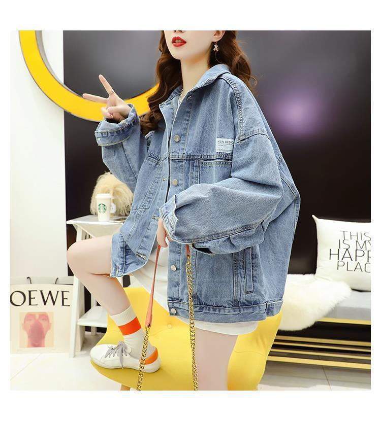 【outer】韓国ファッション秋新作ラペル長袖レトロゆったり着回しデニムジャケットF0695