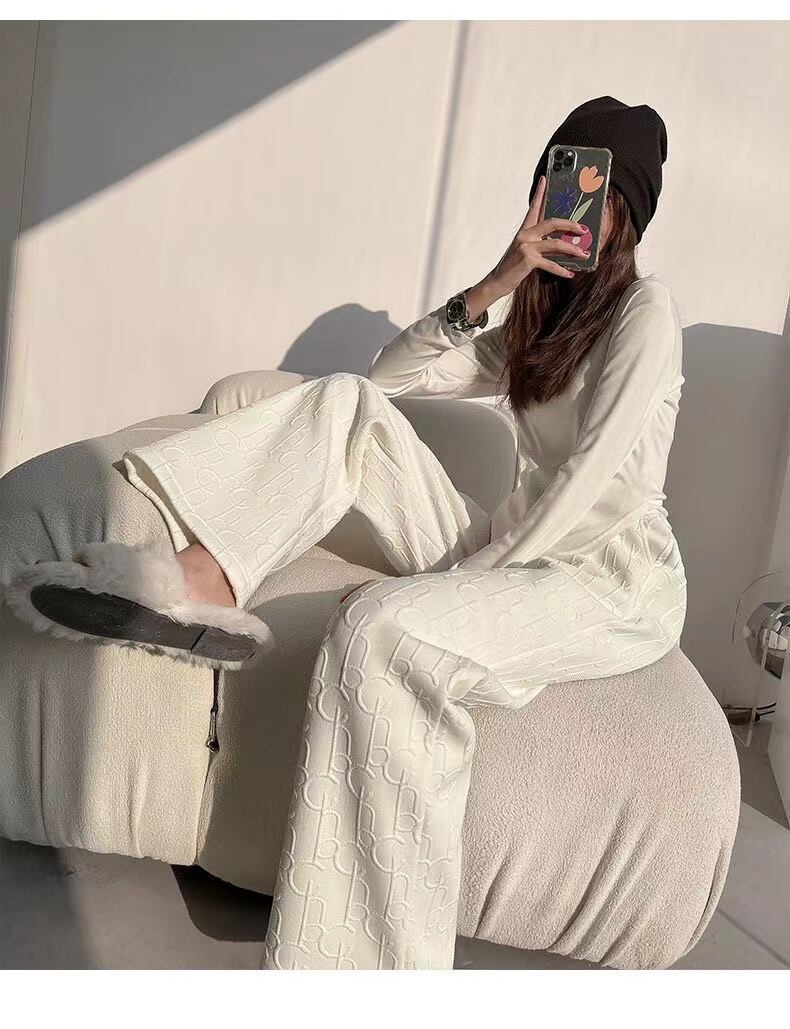 【bottoms】オシャレ度満点裏起毛ハイウエスト合わせやすい英字柄無地寒さ対策ガウチョパンツF1531