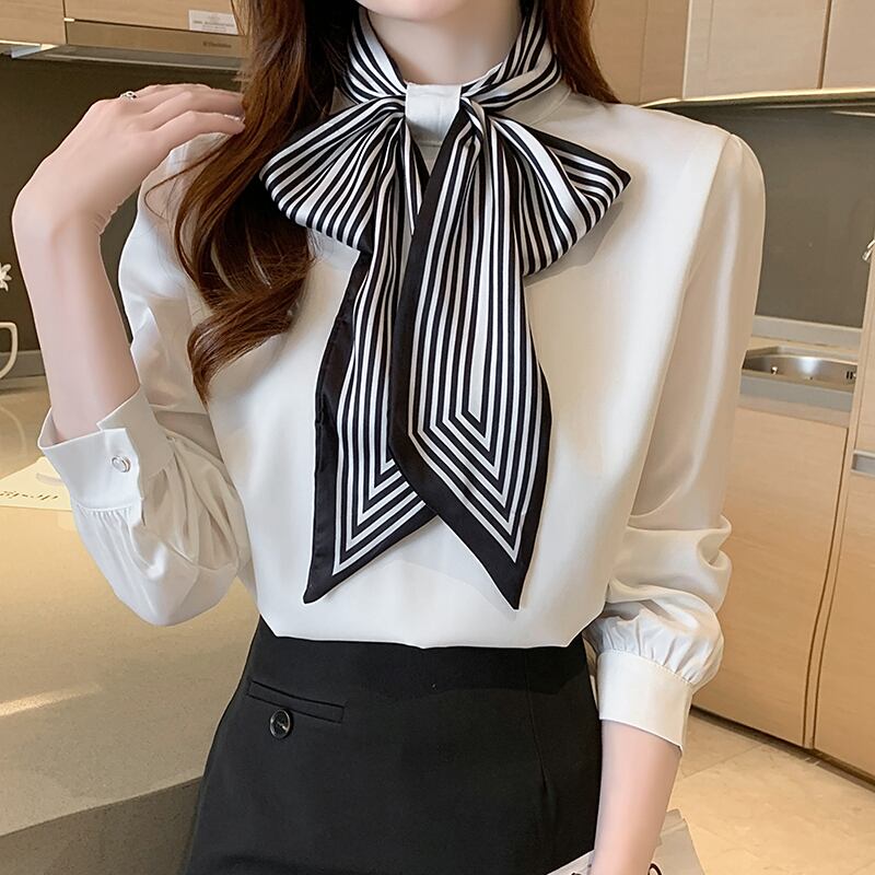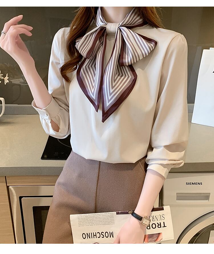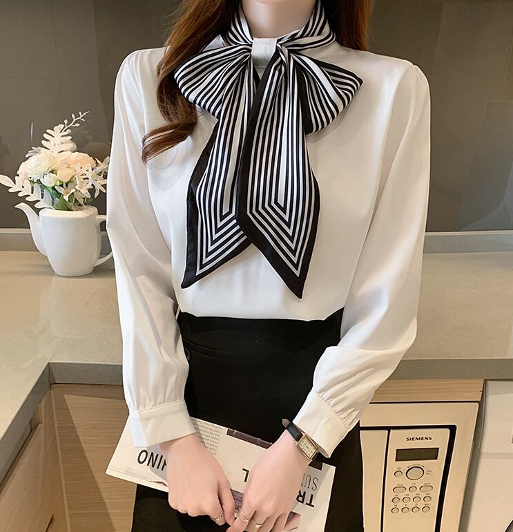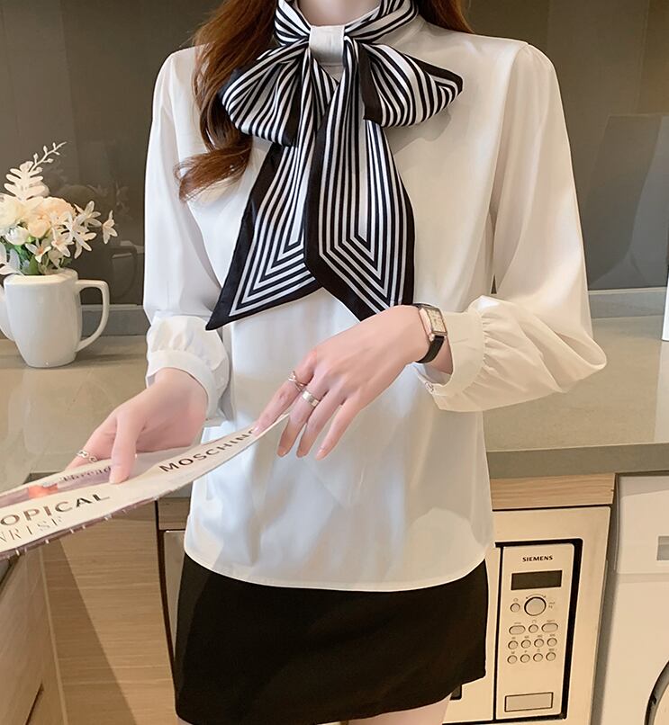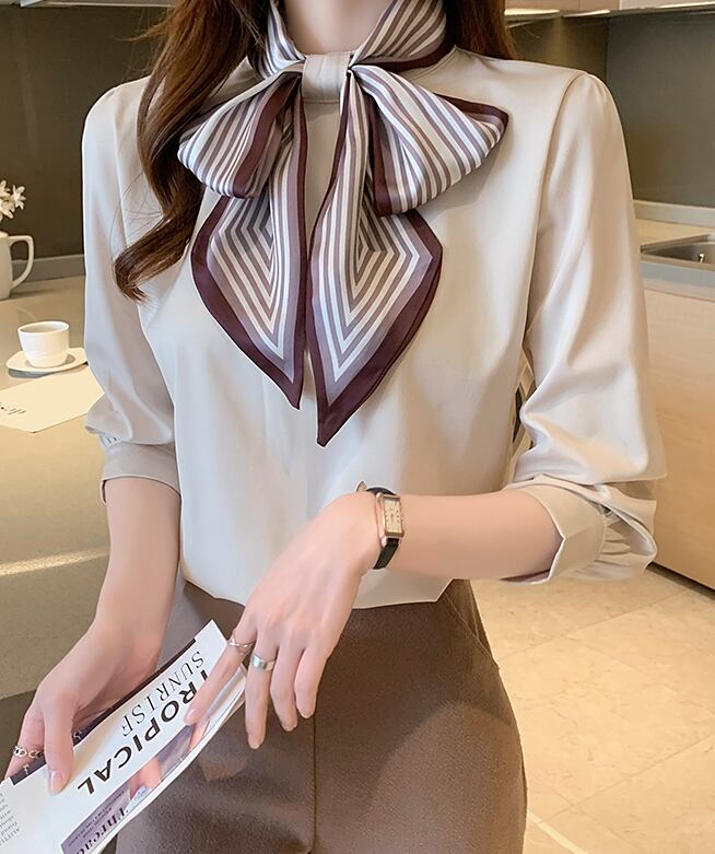 【tops】オシャレ度満点〜2色タイカラー長袖韓国風配色おしゃれ着回しブラウスF1765