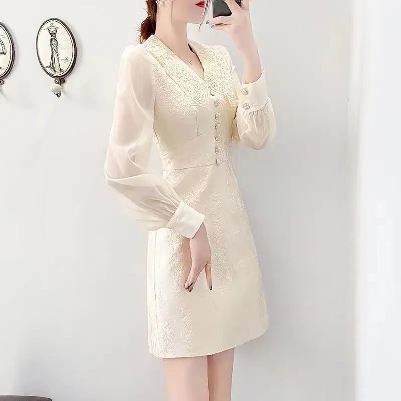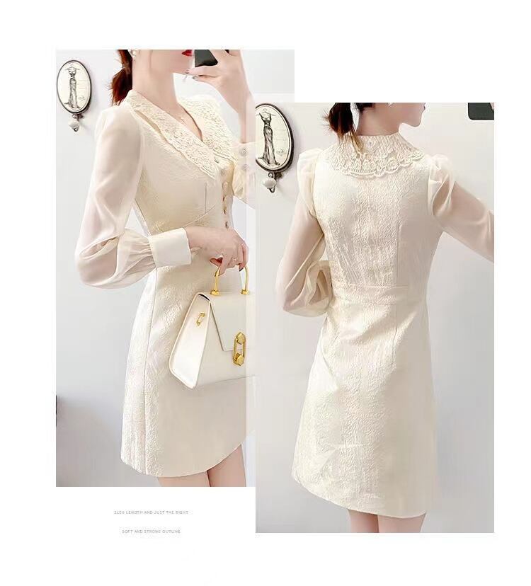 【dress】高級感溢れる春新作ドールカラー長袖ランタンスリーブ韓国ファッション無地OL通勤ワンピースF1806