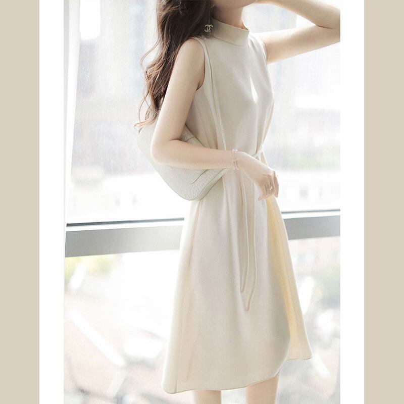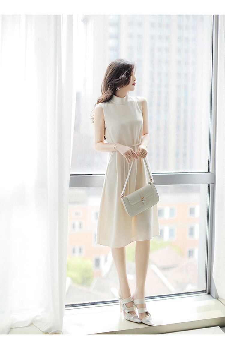 【dress】女性力を高める〜エレガントOL通勤ハーフネックノースリーブ無地韓国ファッションワンピースF2161