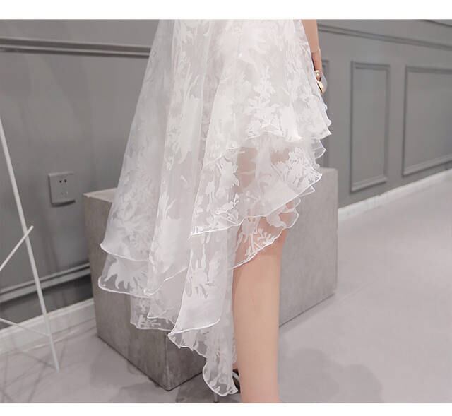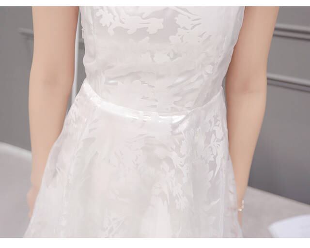 【dress】一目惚れ!ラウンドネックノースリーブ無地メッシュ不規則韓国ファッションワンピースF2299
