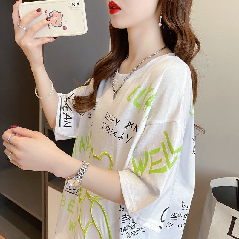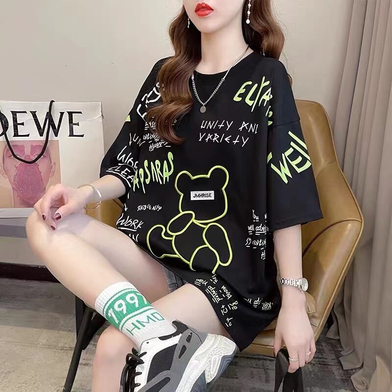 【tops】オシャレ度満点〜夏新作2色ラウンドネック半袖動物柄配色カジュアル大きいサイズ着回しTシャツF2418