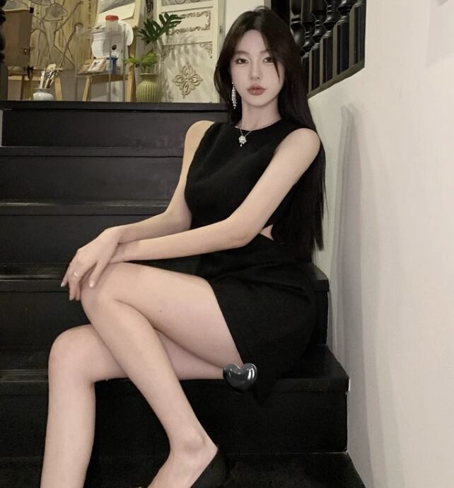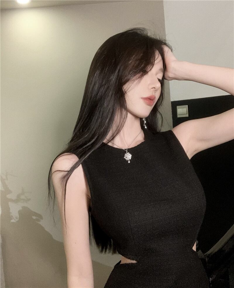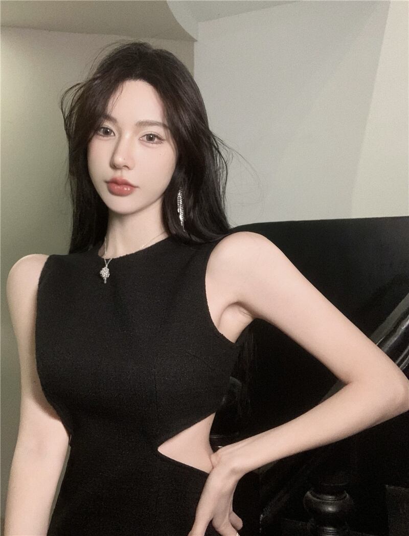 【dress】お値段以上!夏新作2色ラウンドネックノースリーブ二次会披露宴ワンピースF5558