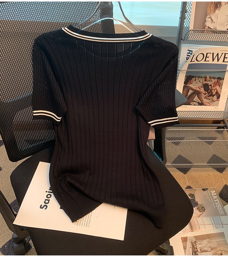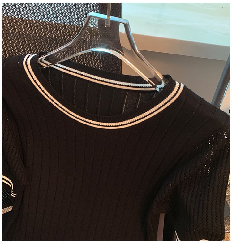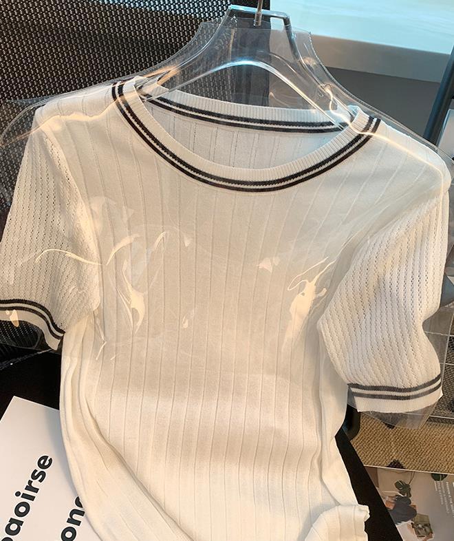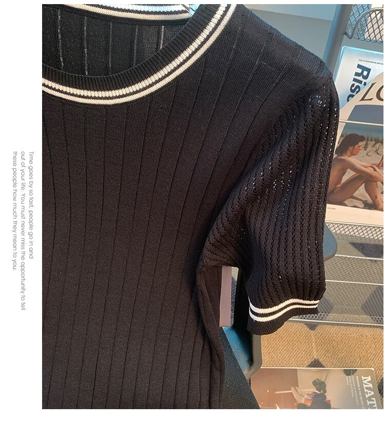 【tops】3色ラウンドネックニットTシャツF7286