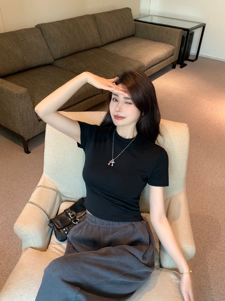 【tops】ラウンドネック半袖TシャツF7348