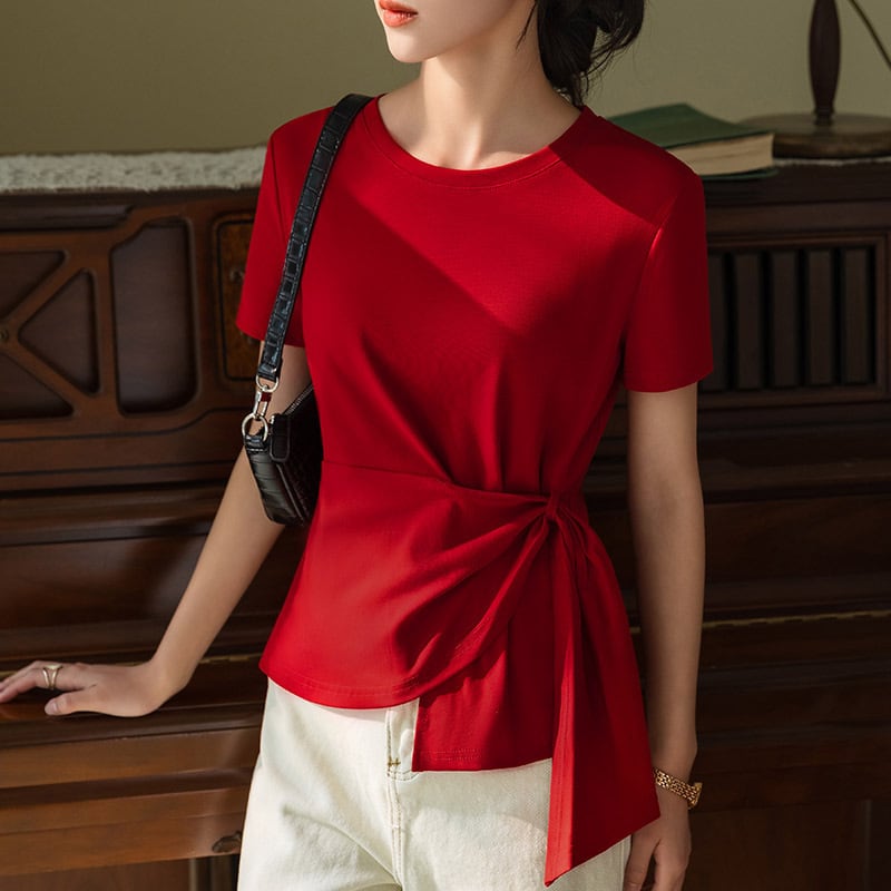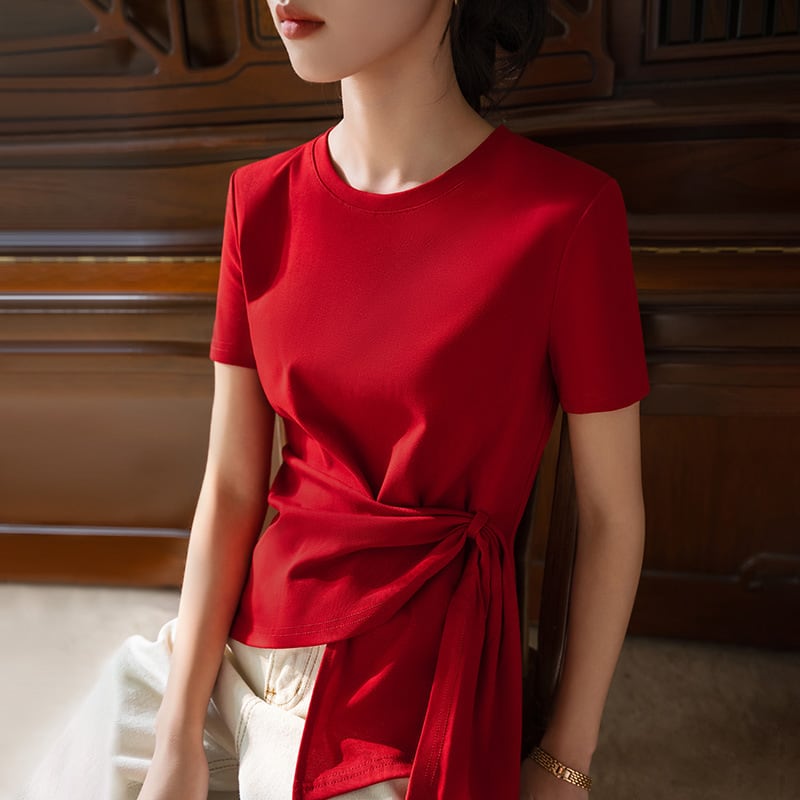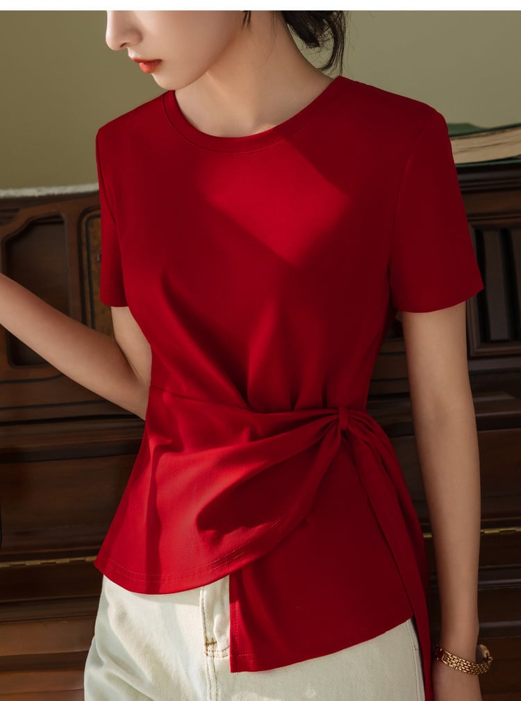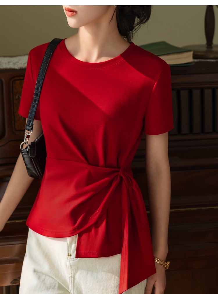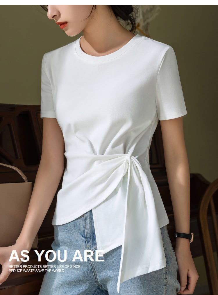 【tops】3色ラウンドネックイレギュラーTシャツF7385