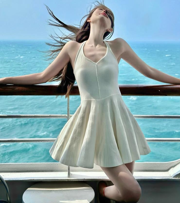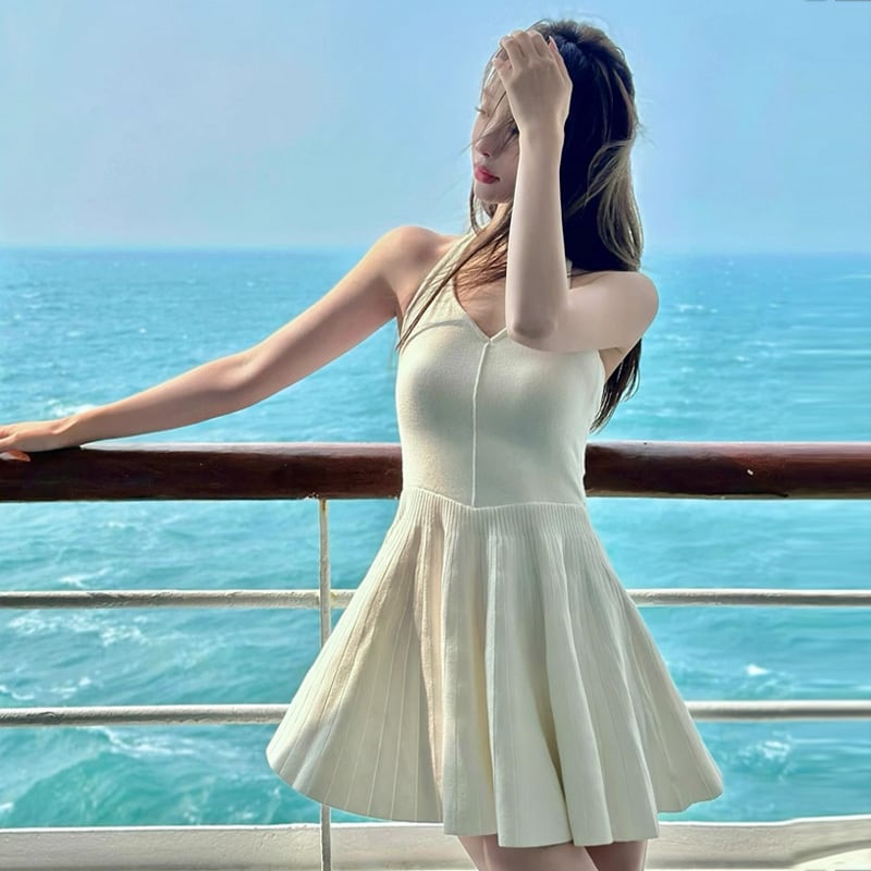 【dress】AラインフリルニットワンピースF7436