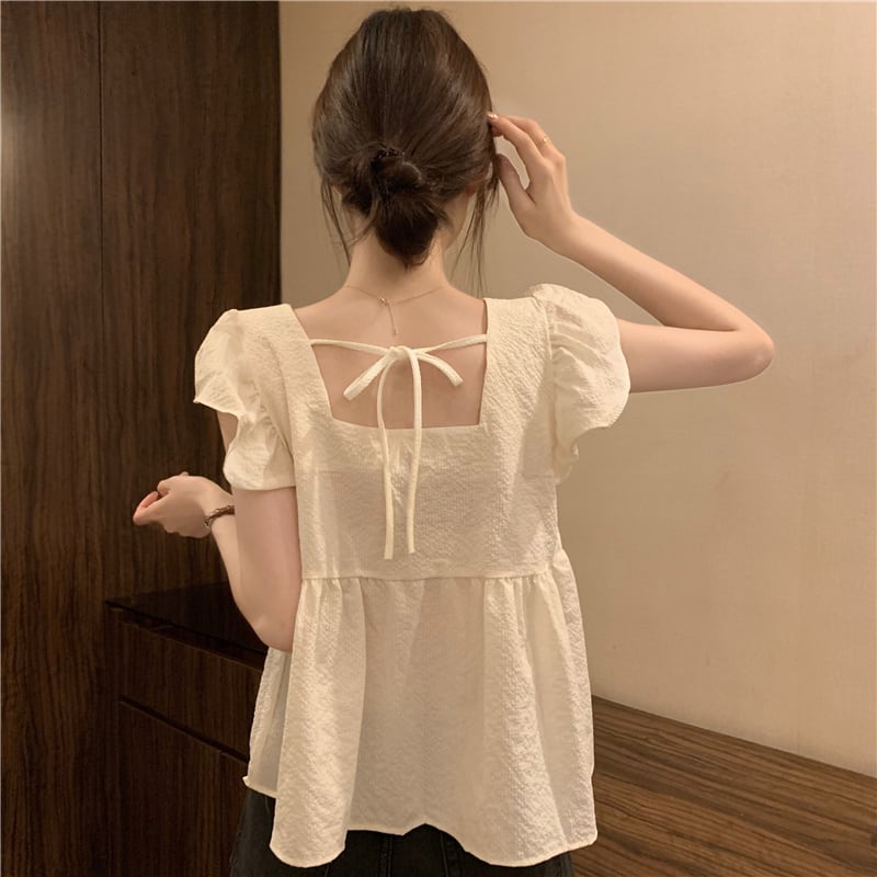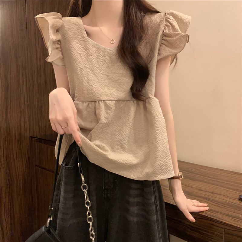 【tops】5色フレンチスリーブフリルブラウスF7483