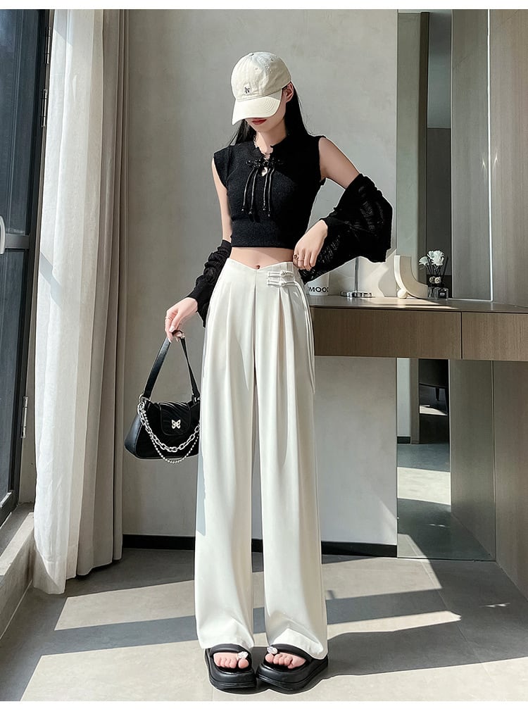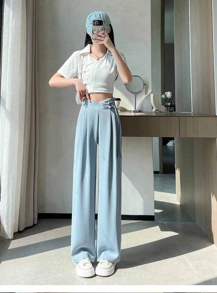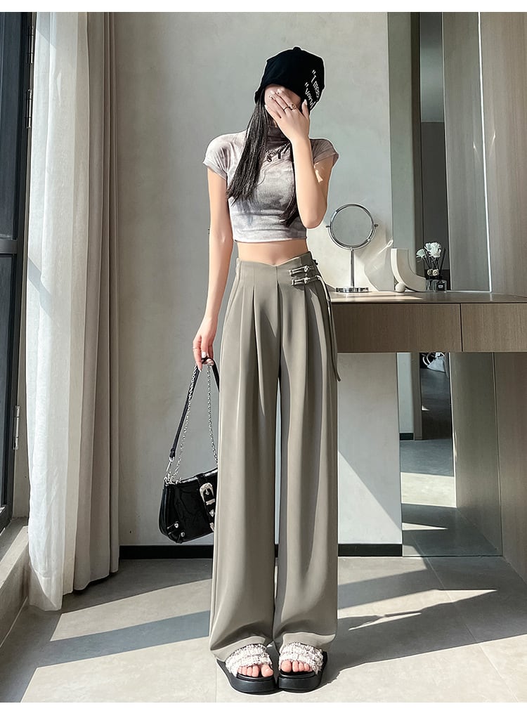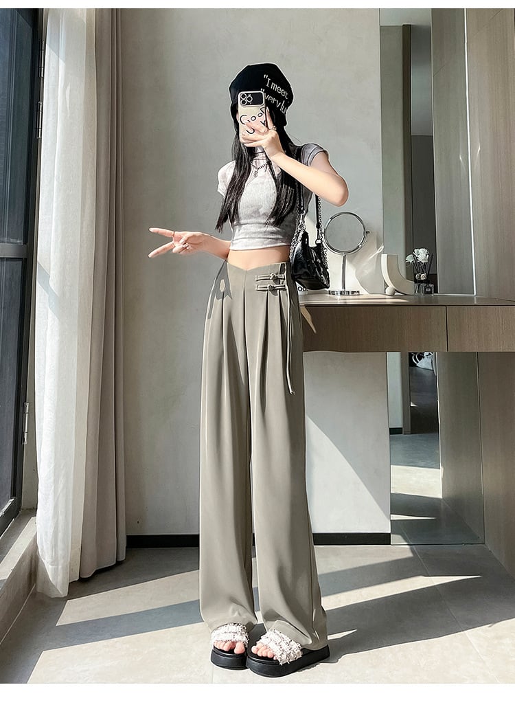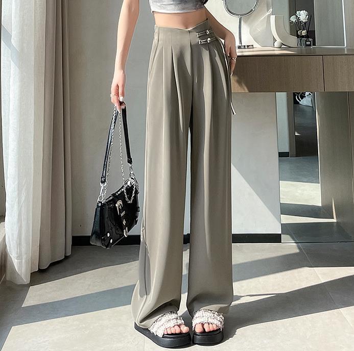【bottoms】4色ハイウエストスーツパンツF7492