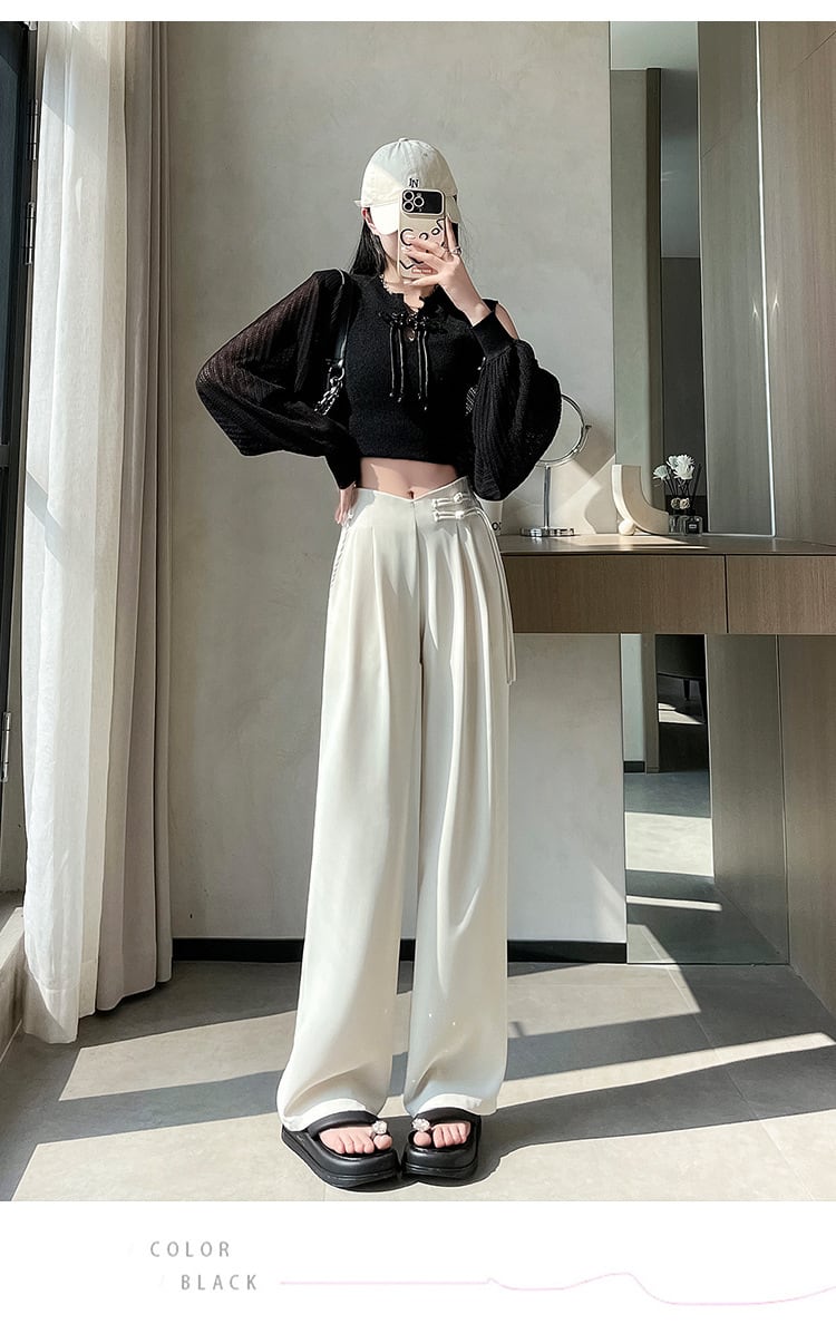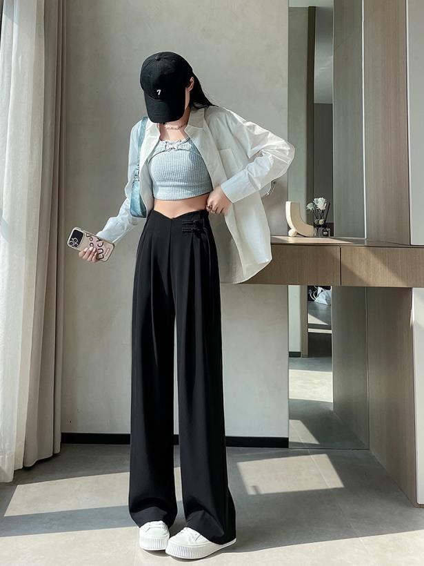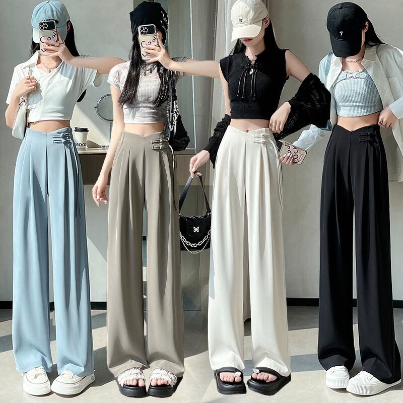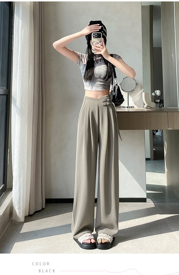 【bottoms】4色ハイウエストスーツパンツF7492