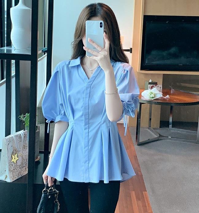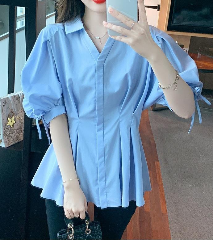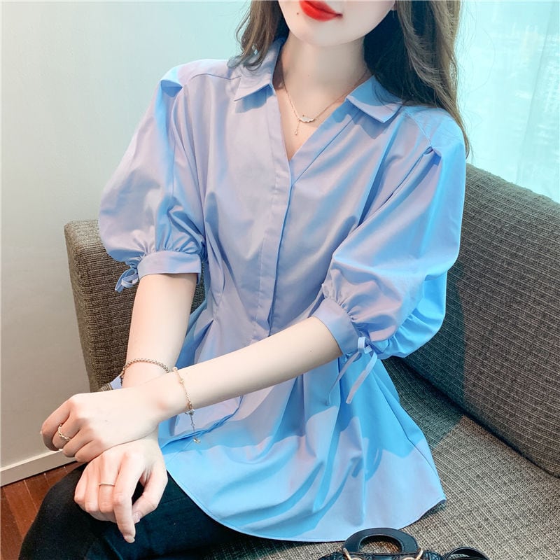 【tops】ランタンスリーブギャザーブラウスF7503