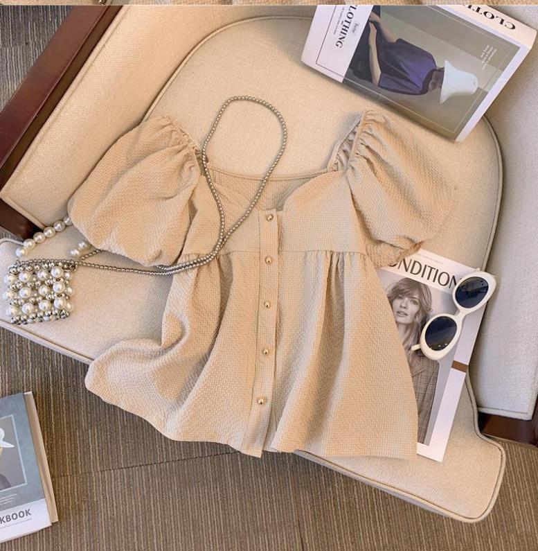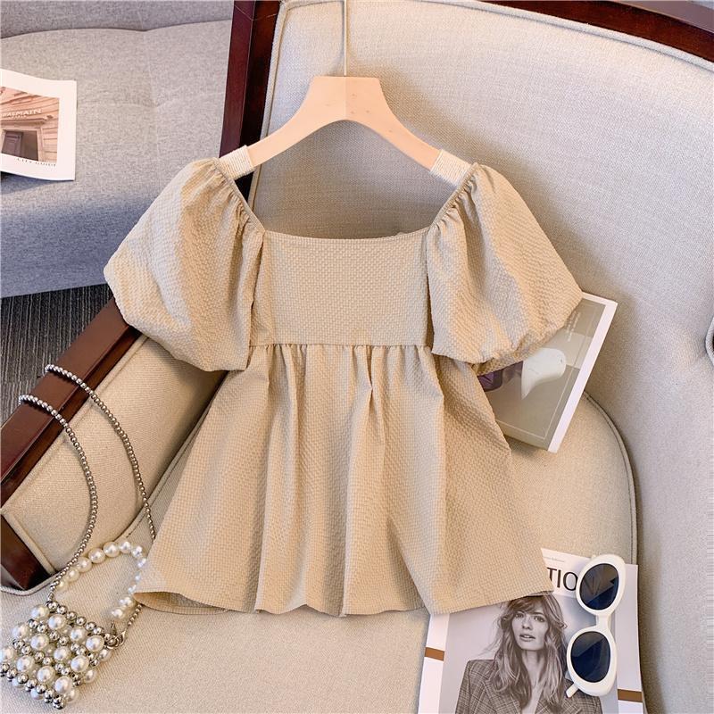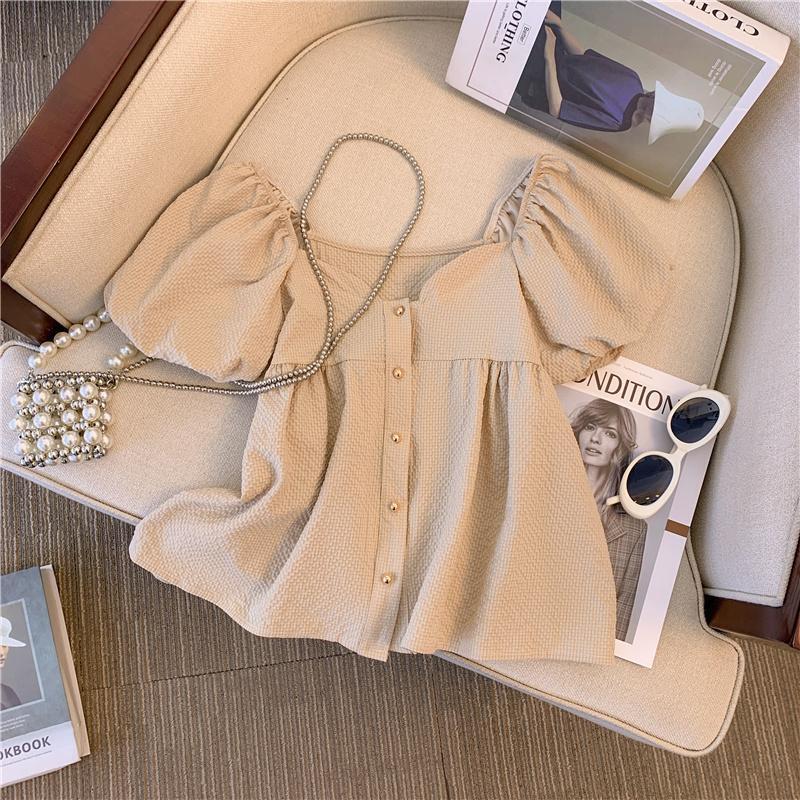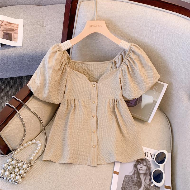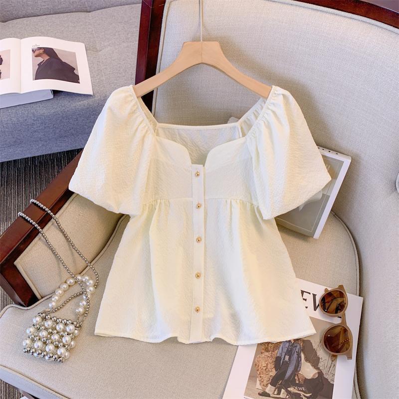 【tops】スクェアネック半袖パフ袖ブラウスF7544