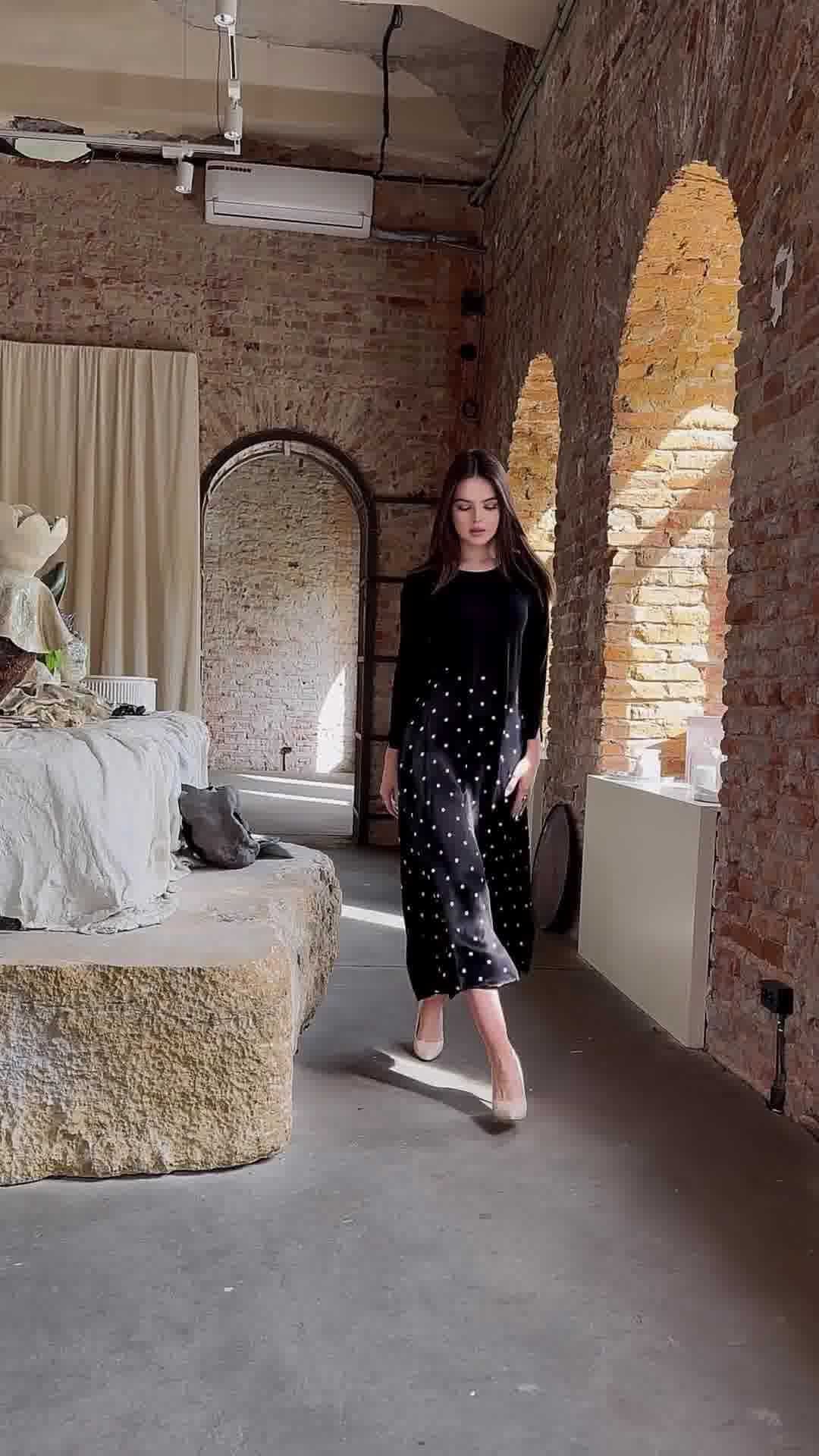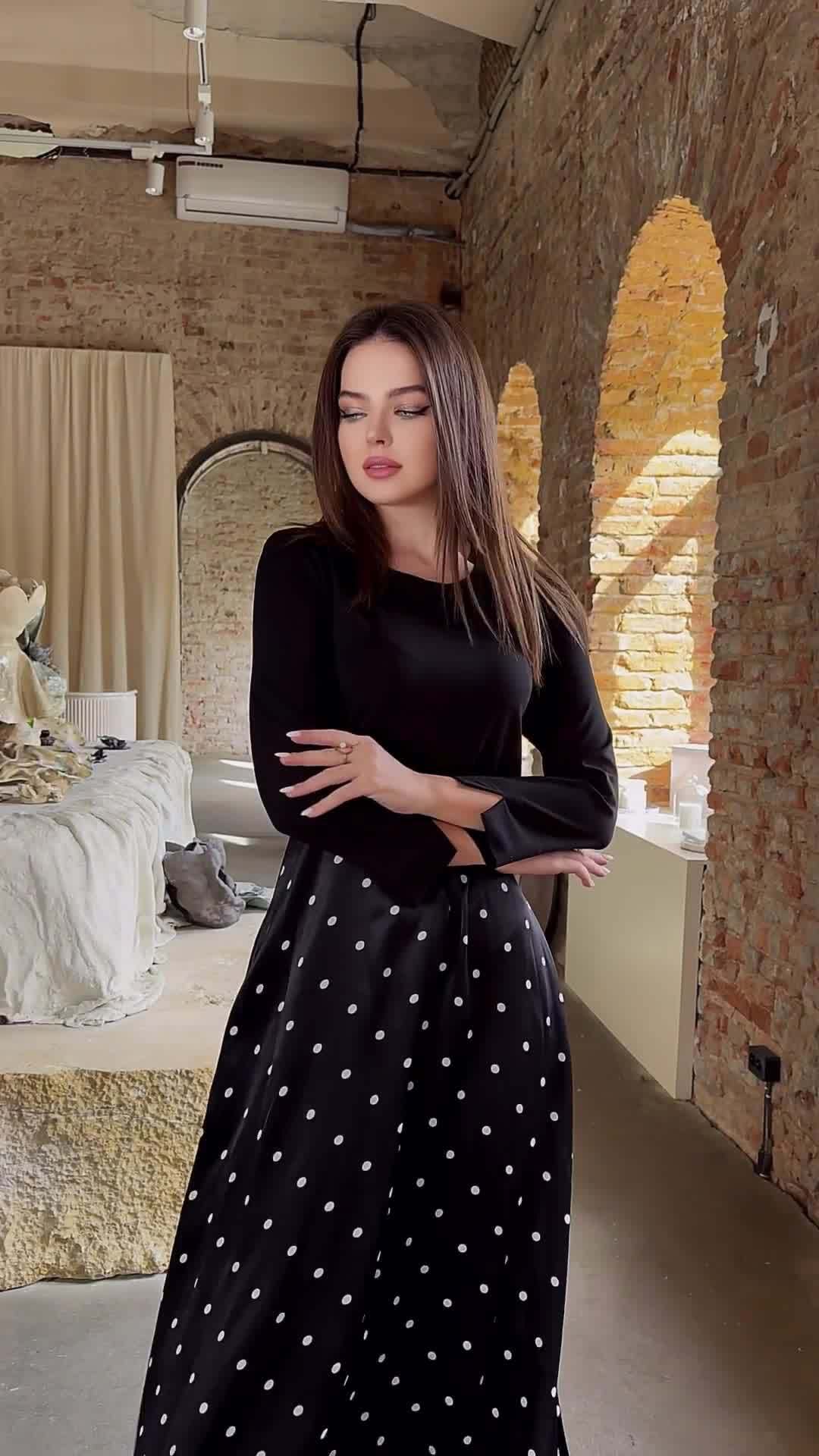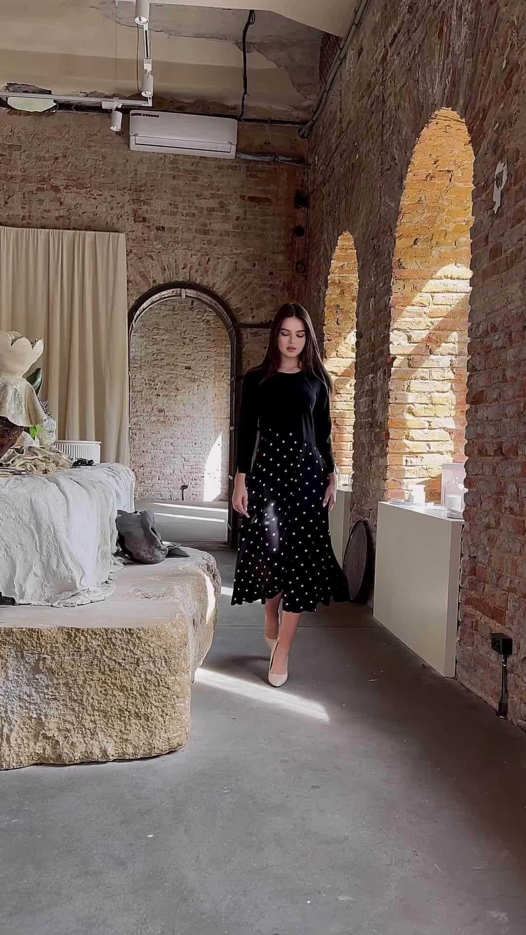 【dress】ラウンドネックドット柄切り替えワンピースF8120