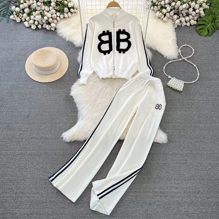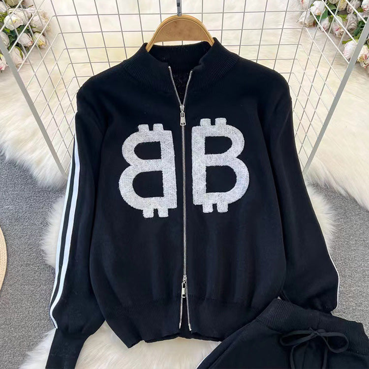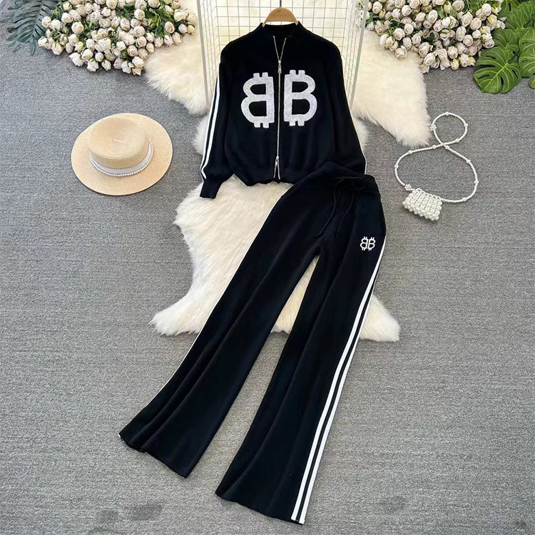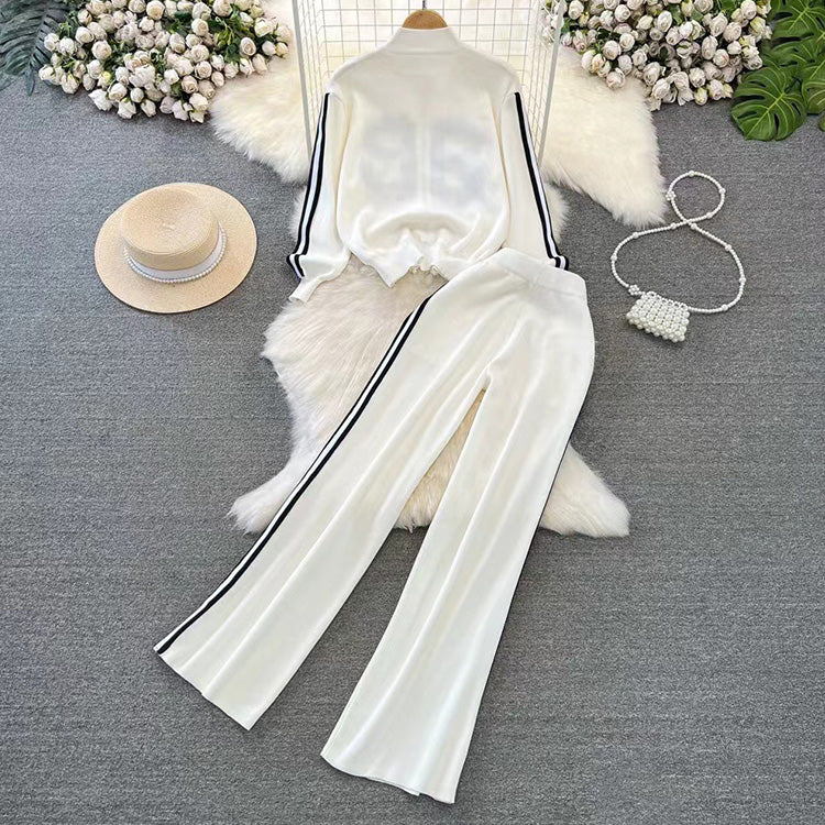 【set】2色ファスナージャケット+ガウチョパンツニット2点セットF8204