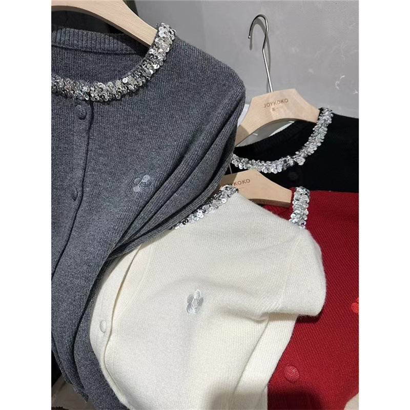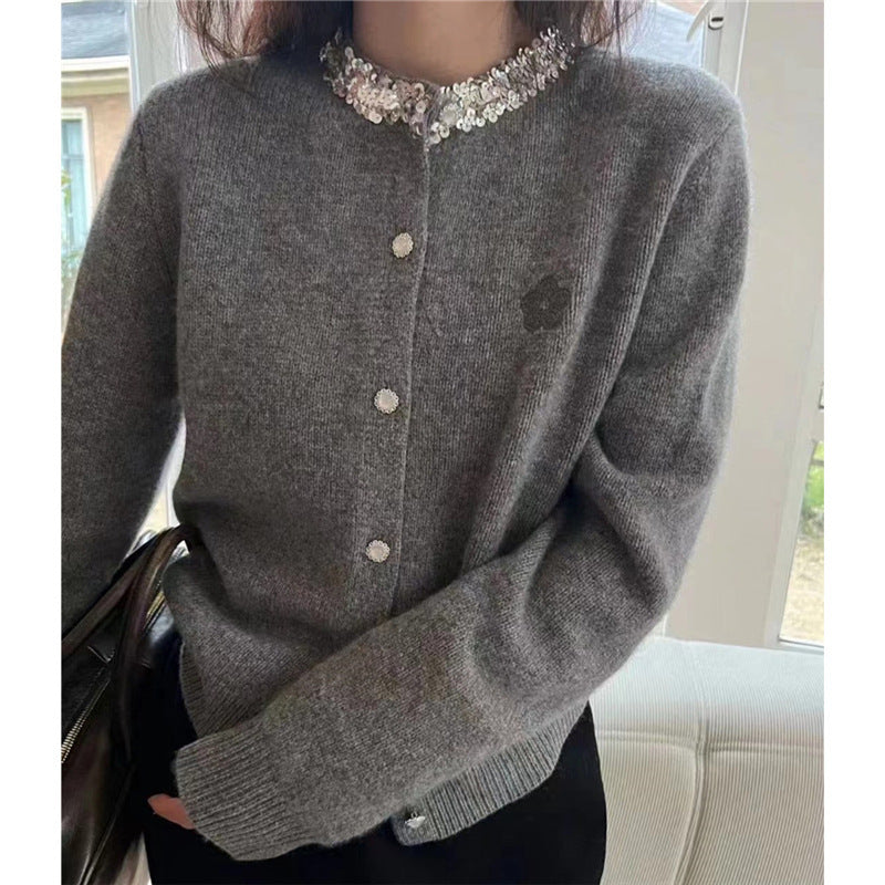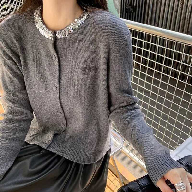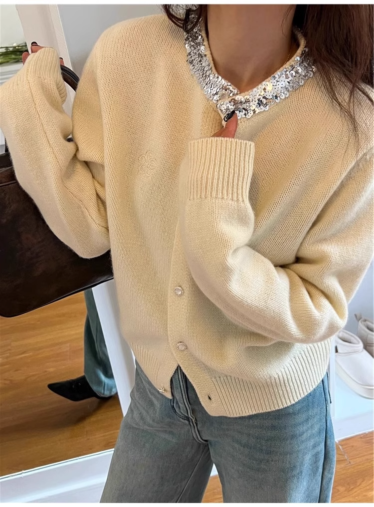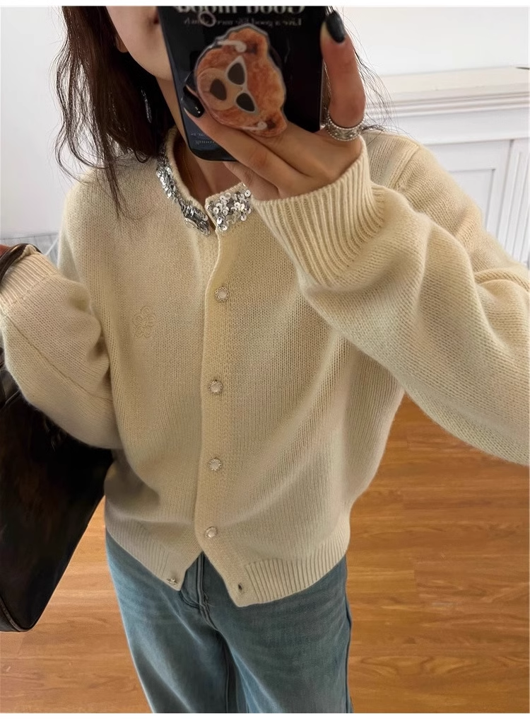 【outer】ラウンドネック長袖ニットカーディガンF8251