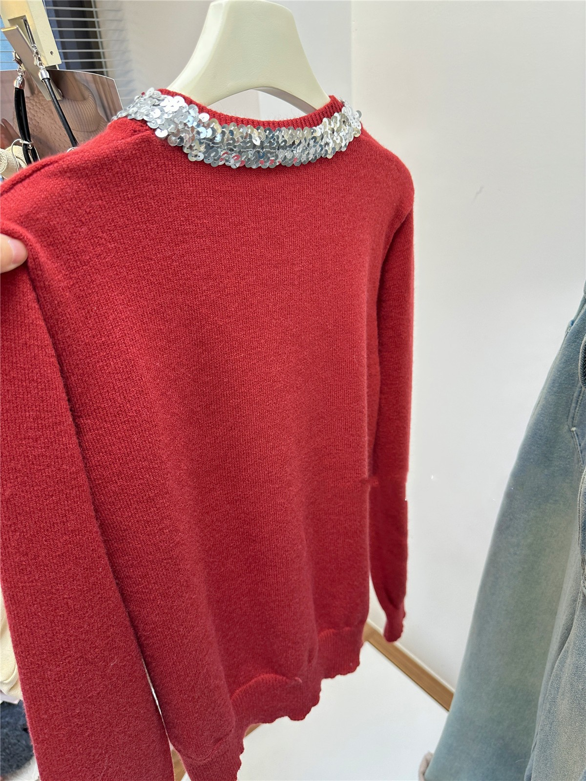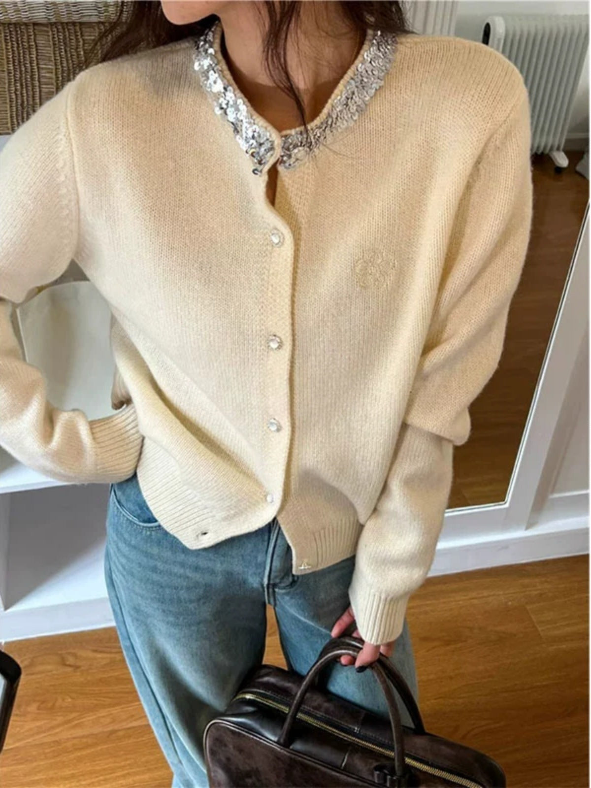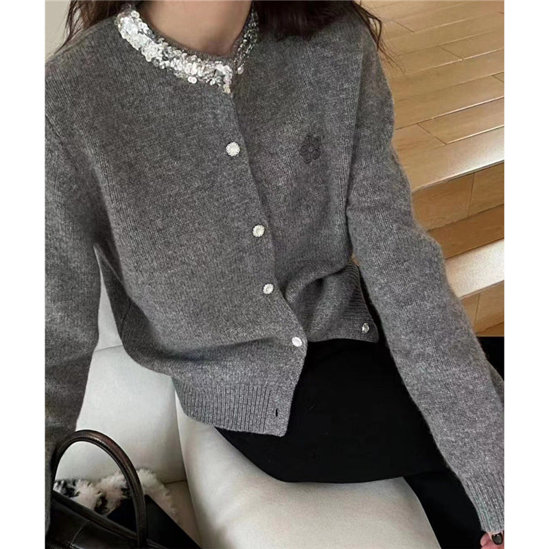 【outer】ラウンドネック長袖ニットカーディガンF8251
