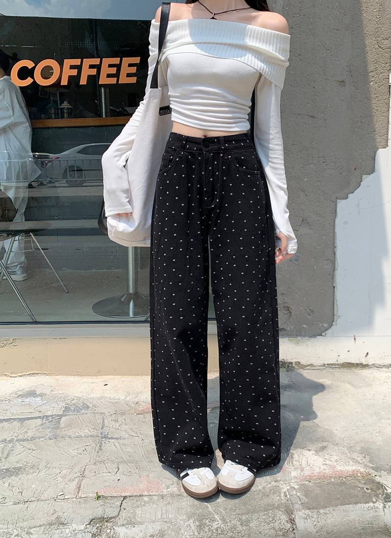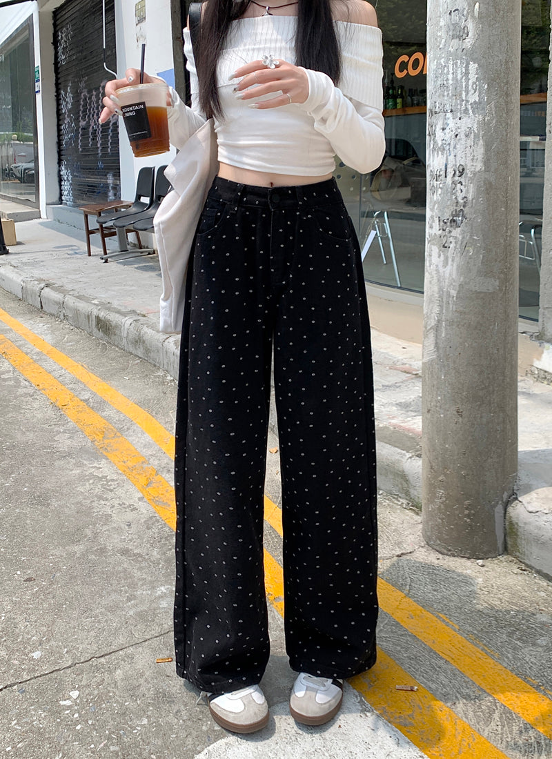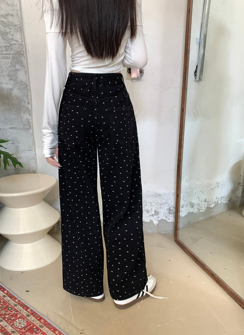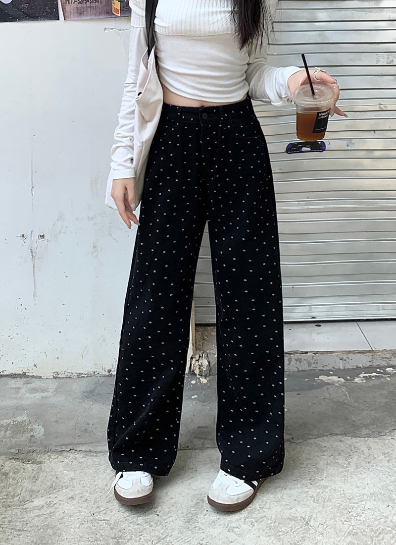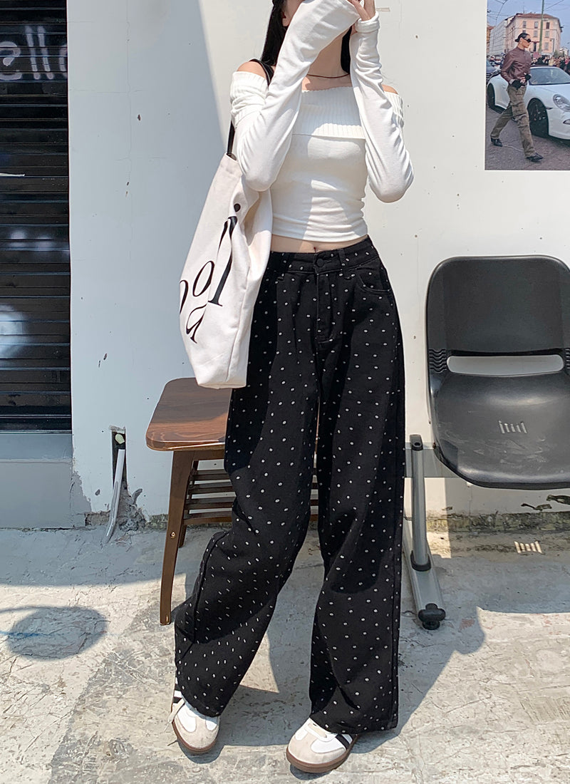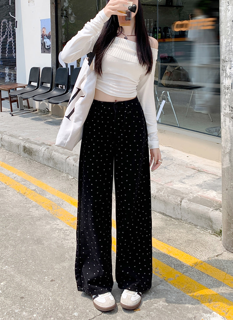 【bottoms】ドット柄ガウチョパンツF8328