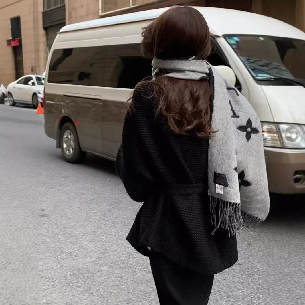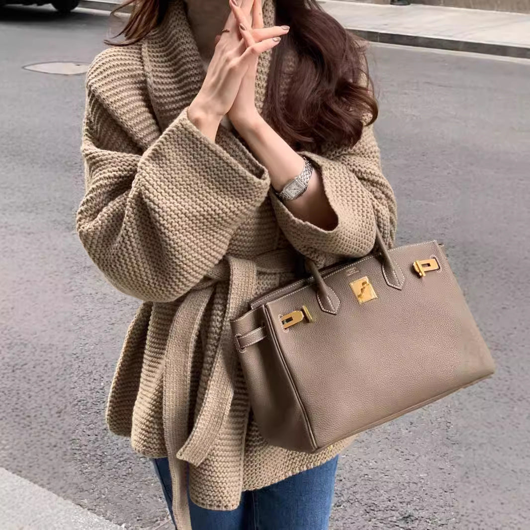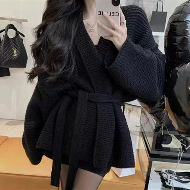 【outer】ウエストリボン長袖ニットカーディガンF8349