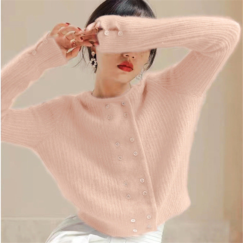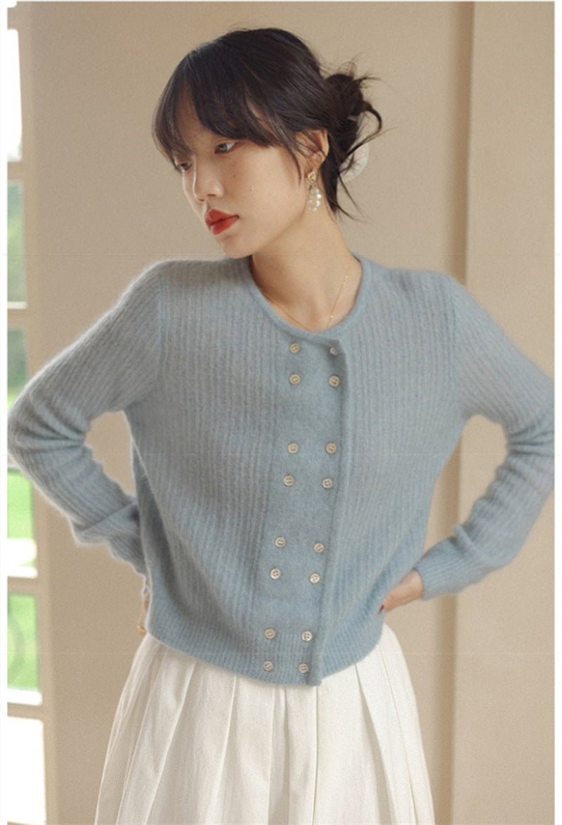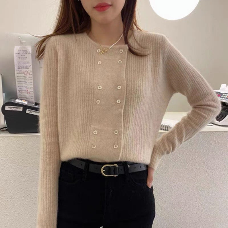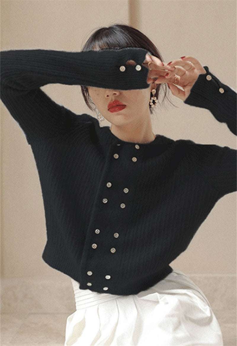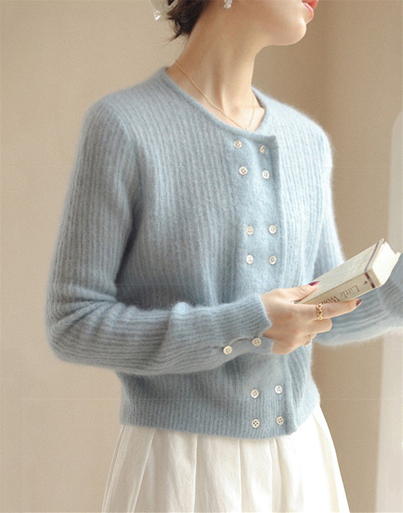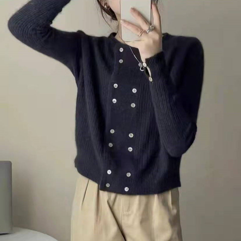 【outer】ラウンドネック長袖ニットカーディガンF8367