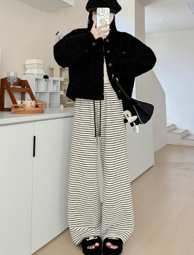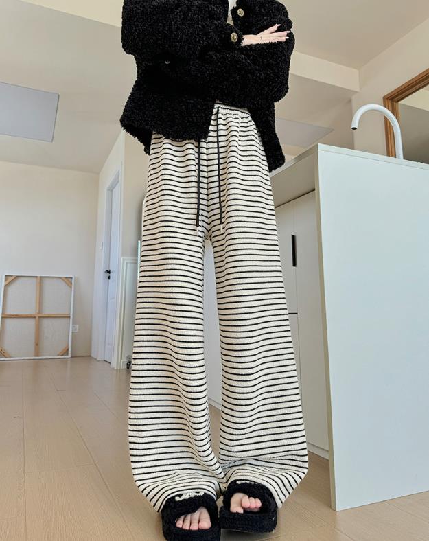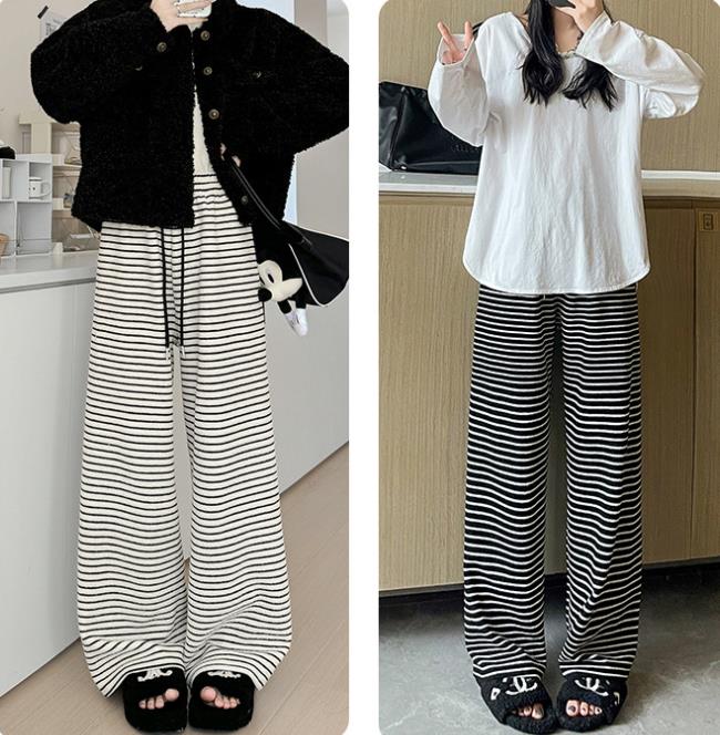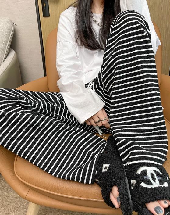 【bottoms】ボーダー柄ガウチョパンツF8398