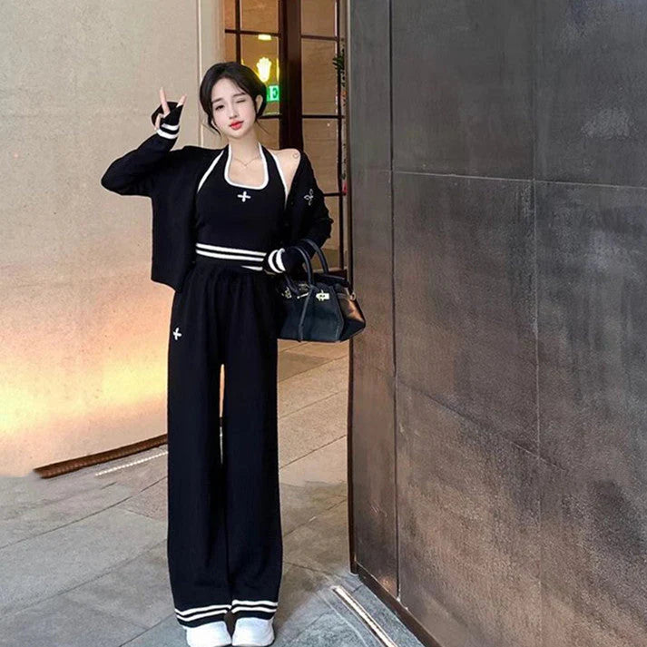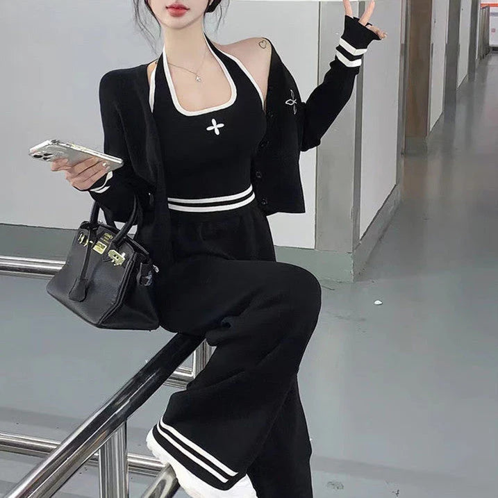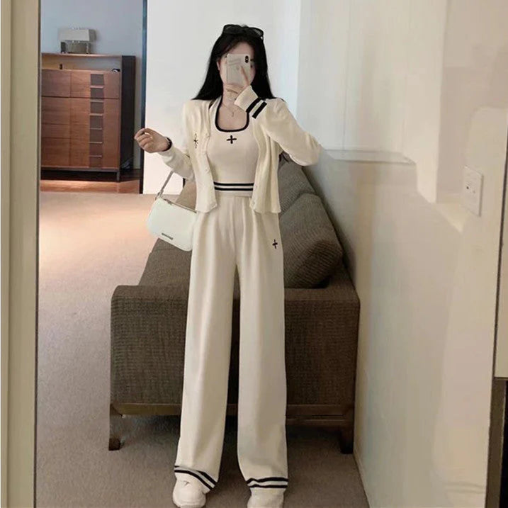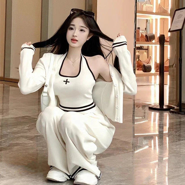 【set】カーディガン+ワイドパンツ+キャミソール 3点セットF8467