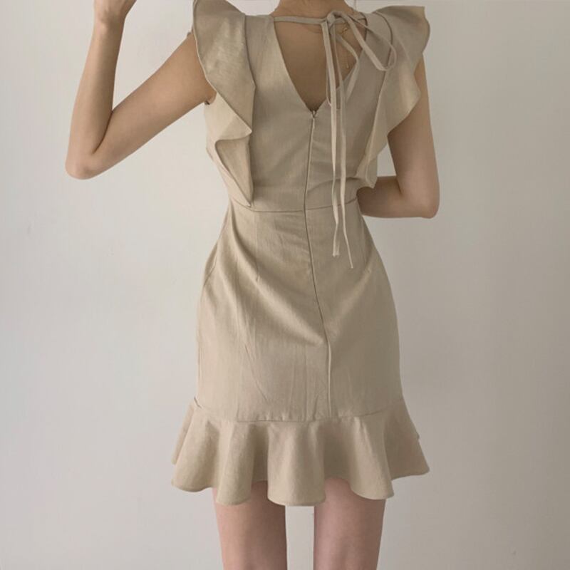 【dress】韓国風好感度UP!気質満点レトロフリル着痩せマーメイドワンピース G0127