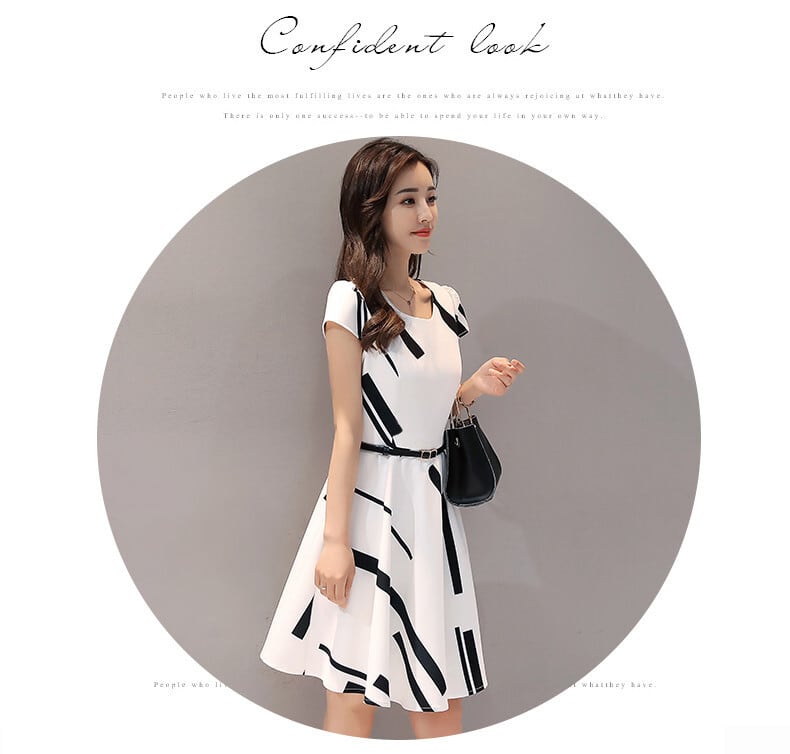 【dress】韓国風好感度UP!気質満点清新スウィートラウンドネックワンピース G0171