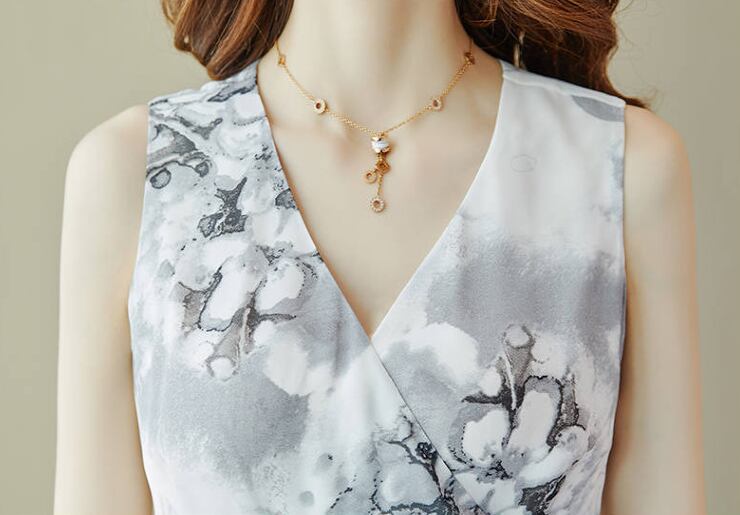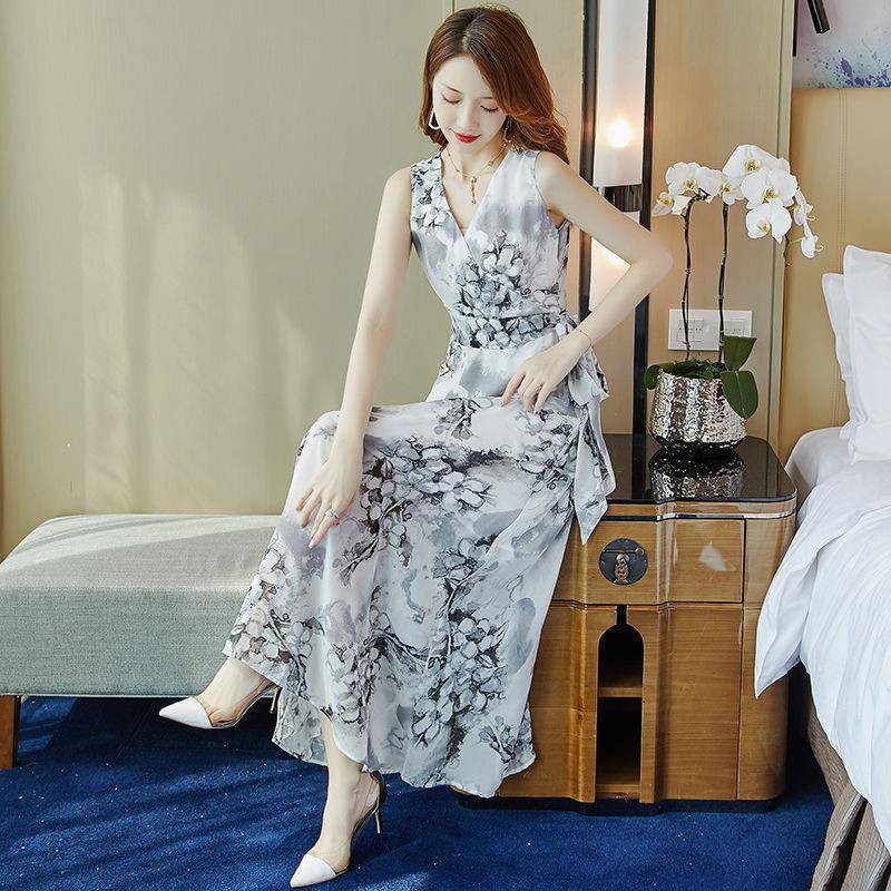 【dress】エレガント美人度アップ!気質満点Vネックシフォン着痩せワンピース G0177