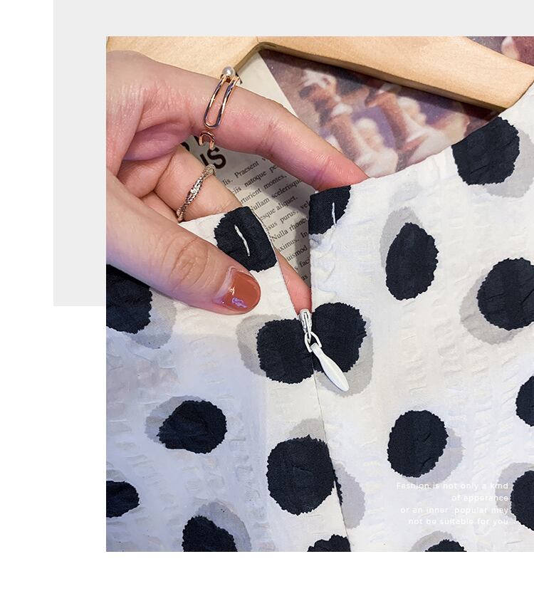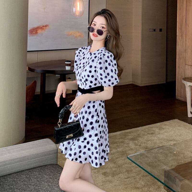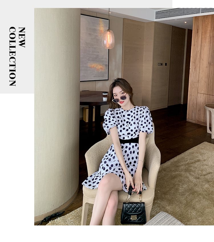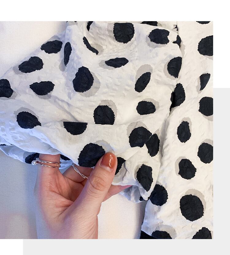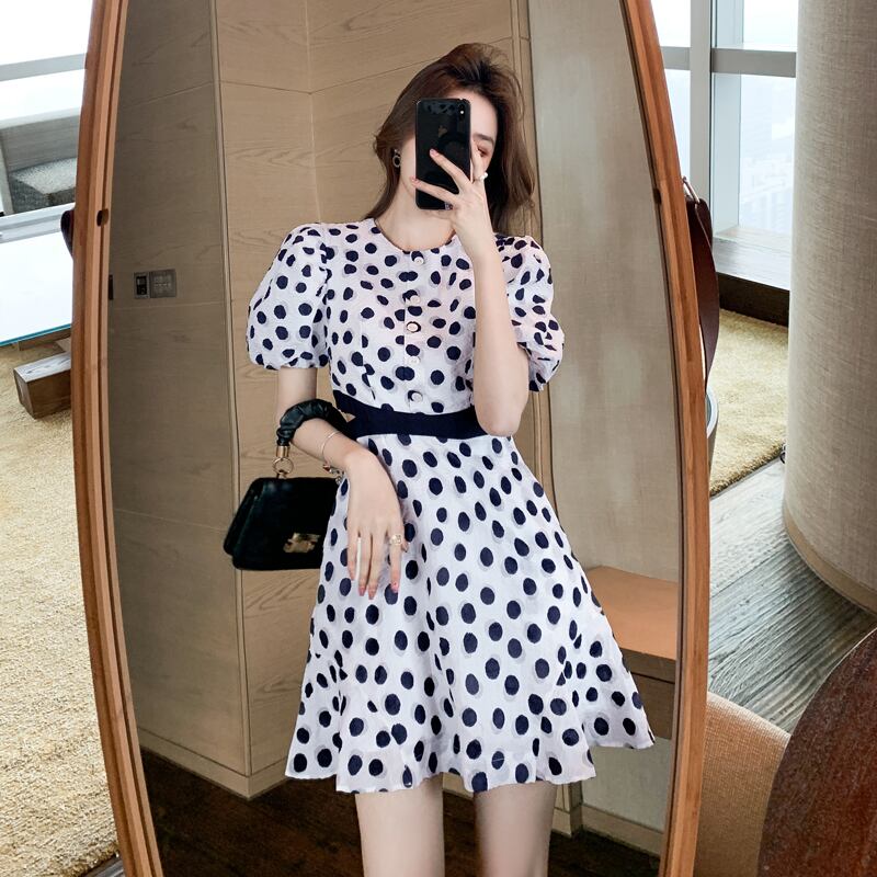 【dress】高級感好感度UP!気質満点パフスリーブドット柄透かし彫りワンピース G0257