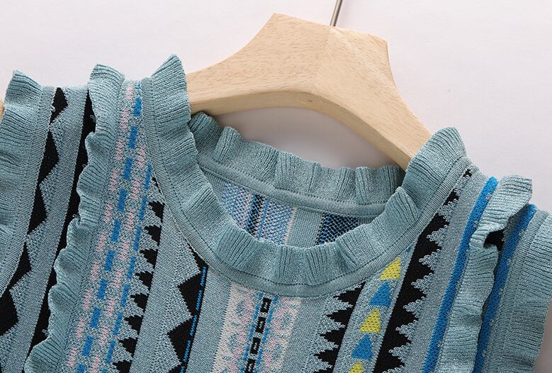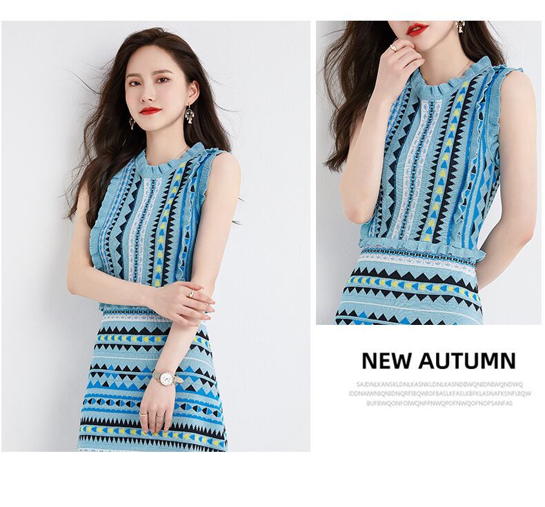 【dress】ファッションストライプ柄切り替え気質満点ノースリーブニット ワンピース G0407