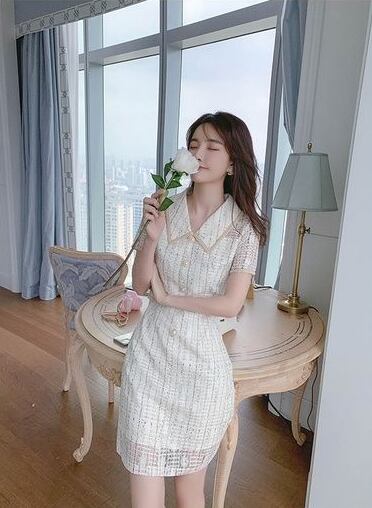 【dress】美人度アップ!気質満点折り襟夏透かし彫り着痩せ ワンピース G0465