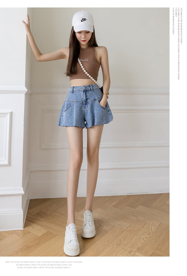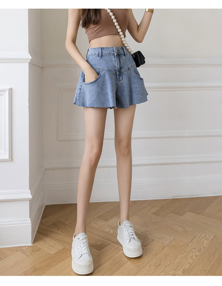 【bottoms】美人度アップ!韓国系着痩せフリルハイウエストショートパンツ G0594