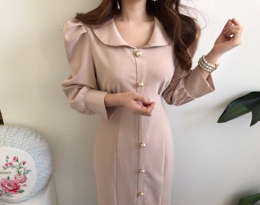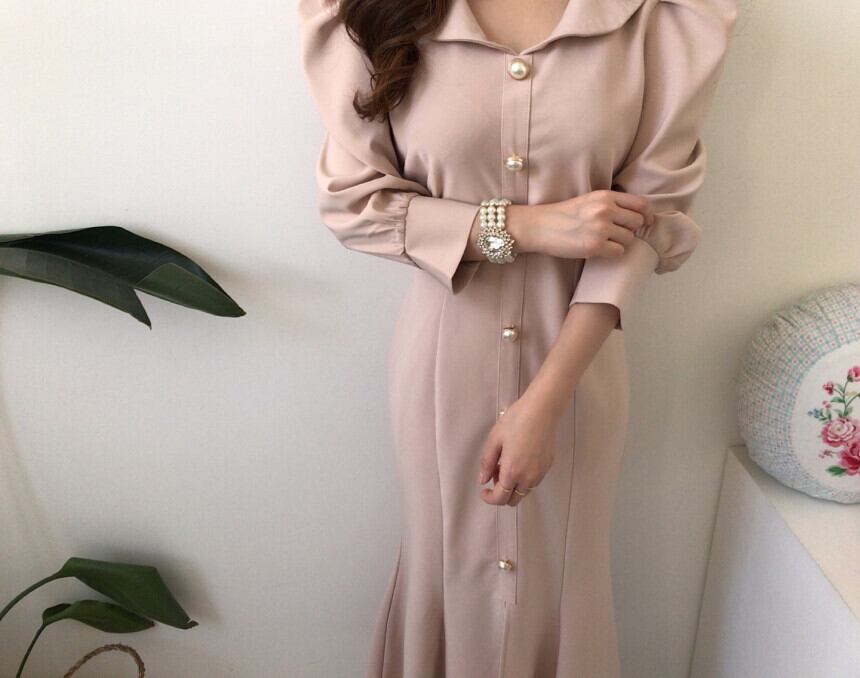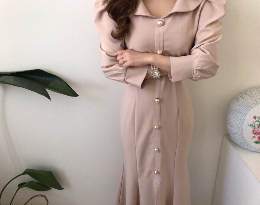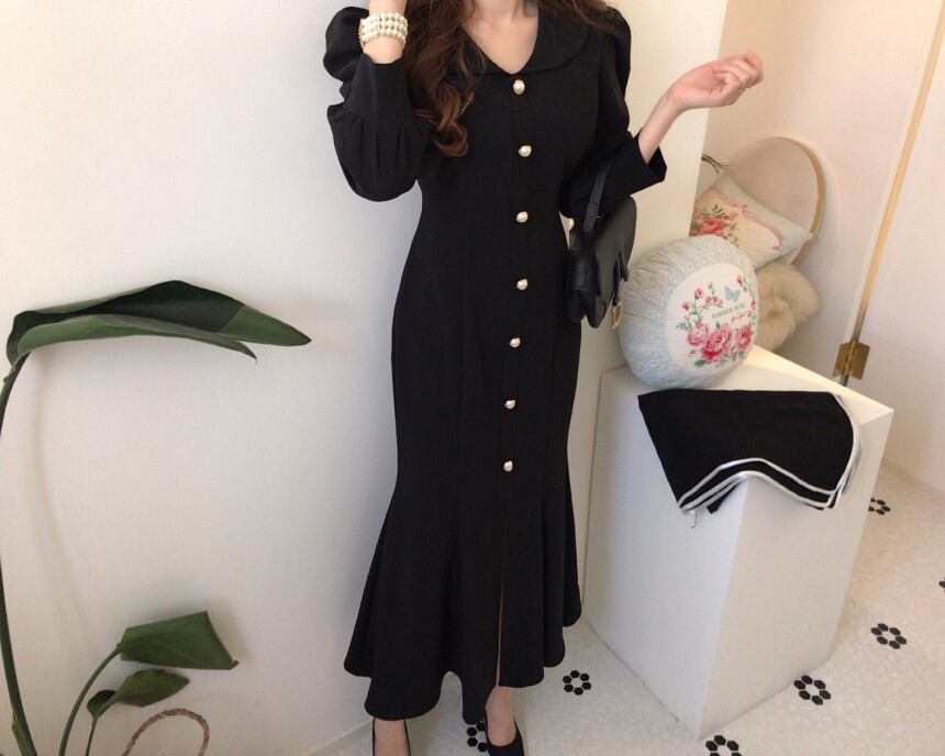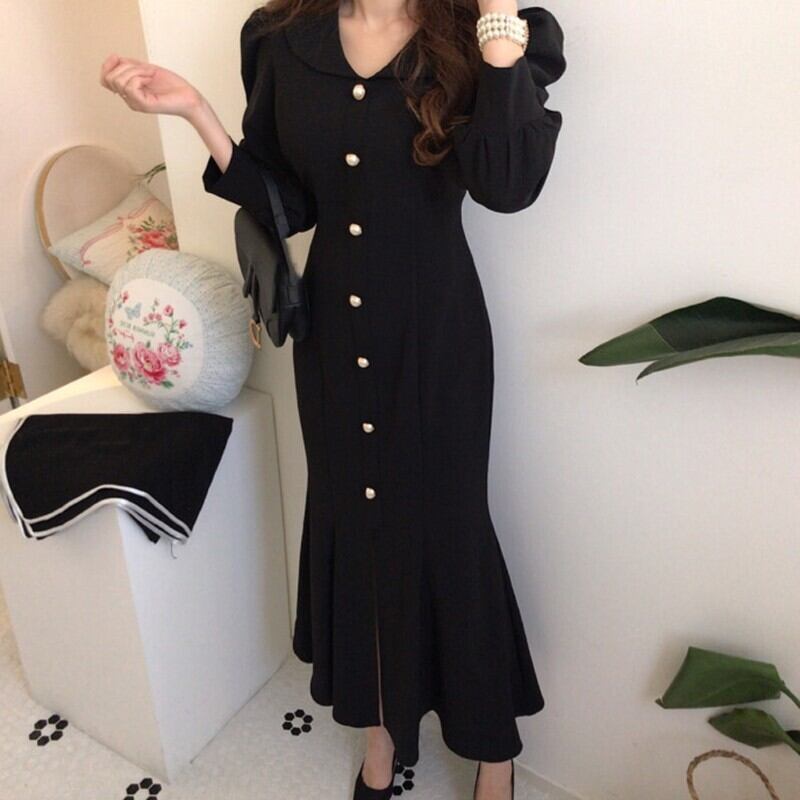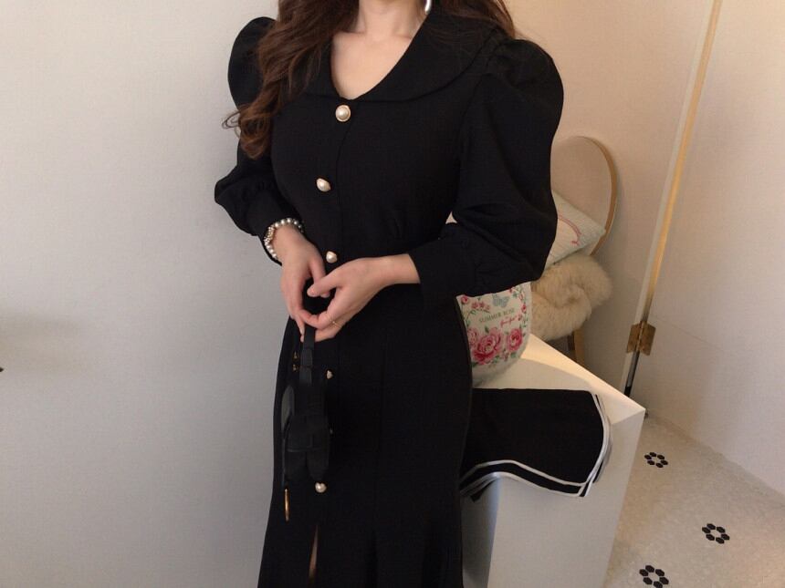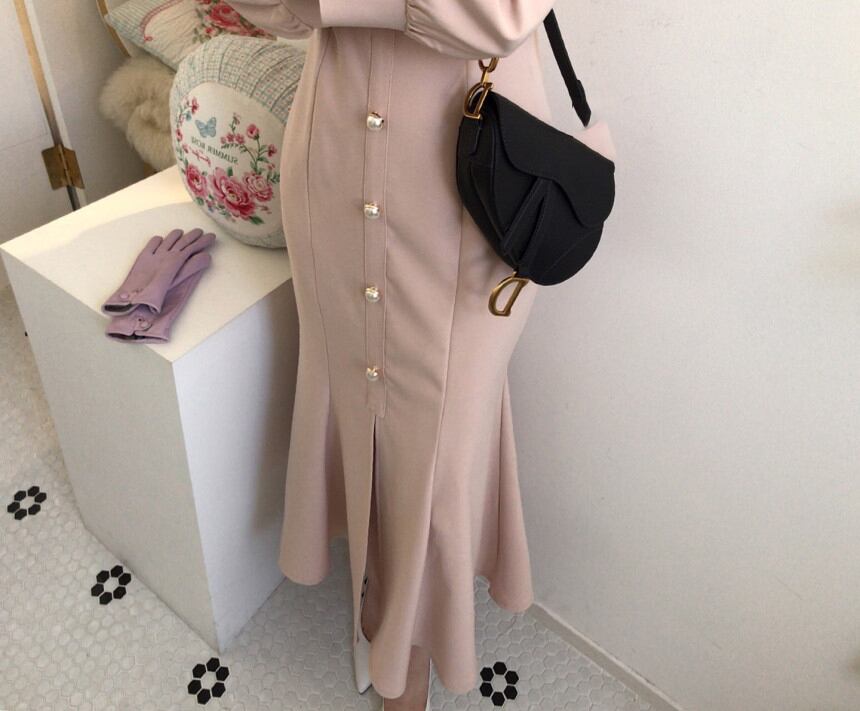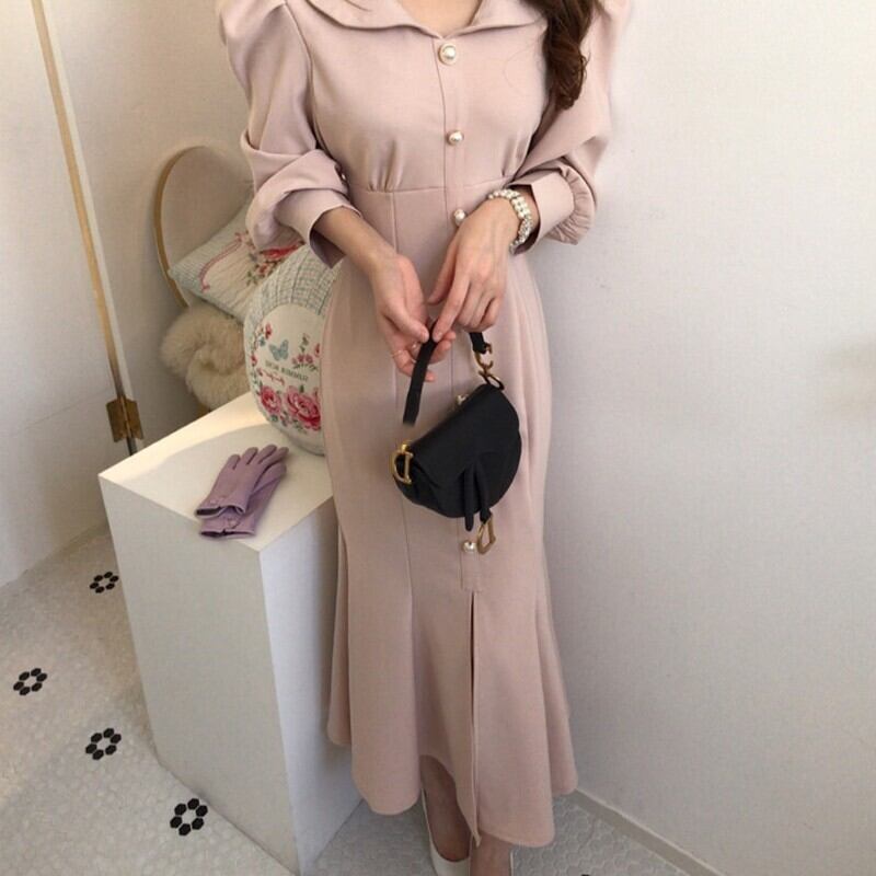【dress】エレガント気質満点レトロハイウエスト着痩せ マーメイドワンピース G1404